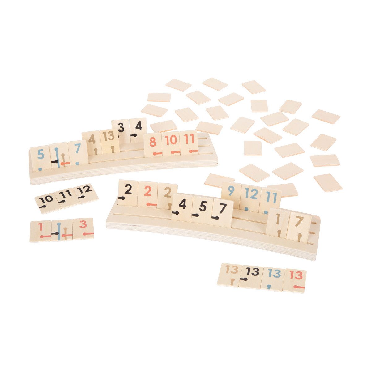 Ob mit Freunden oder der Familie – dieses Rummy bringt Generationen zusammen. Ziel ist es, durch logisches Kombinieren und cleveres Ablegen die Spielsteine loszuwerden. Wer zuerst keine mehr auf seinem Aufsteller hat, gewinnt die Runde.