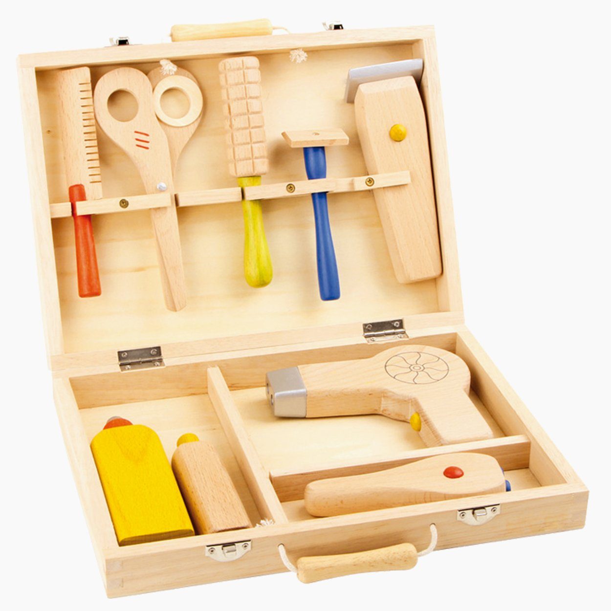 Frisierkoffer und Friseurutensilien aus Holz – kreatives Rollenspiel für kleine Stylisten ab 3 Jahren