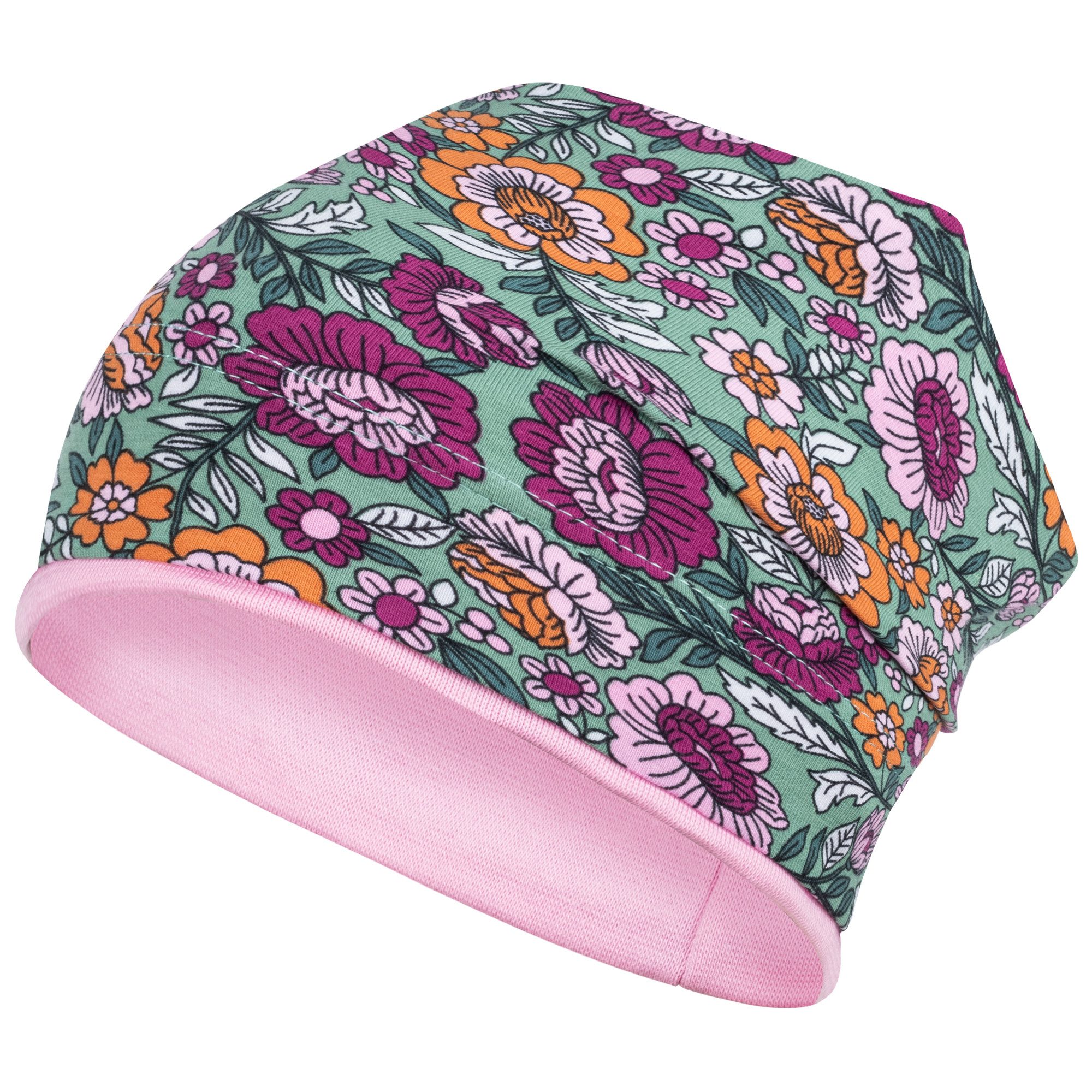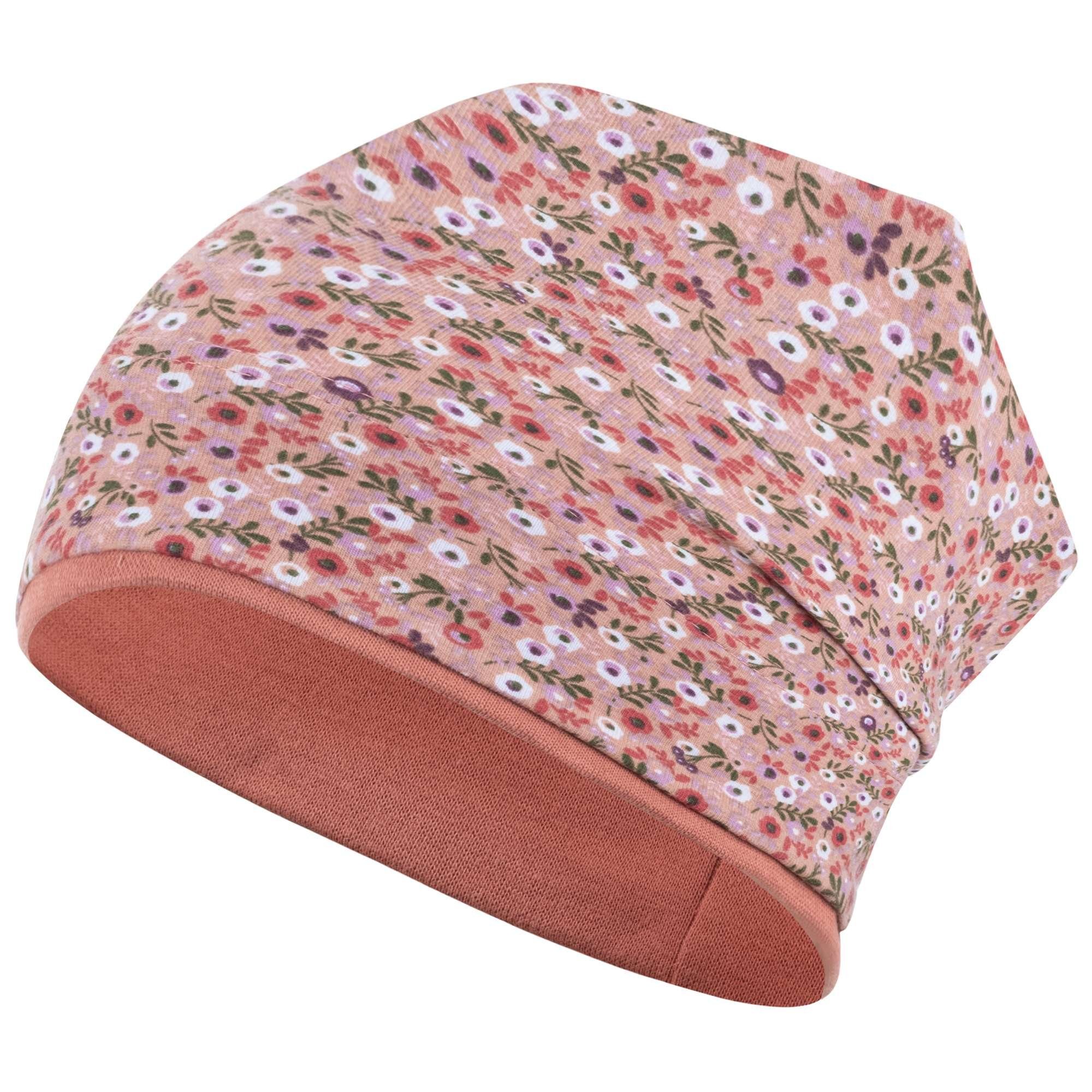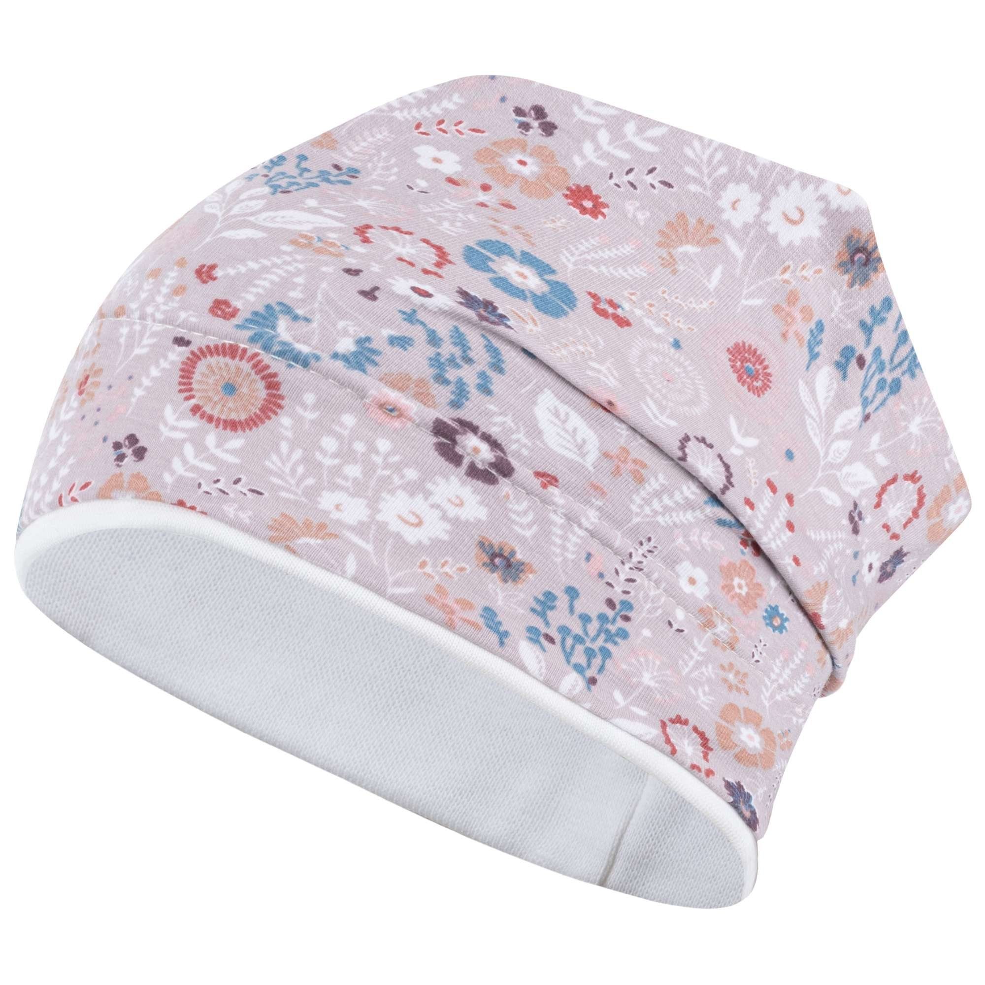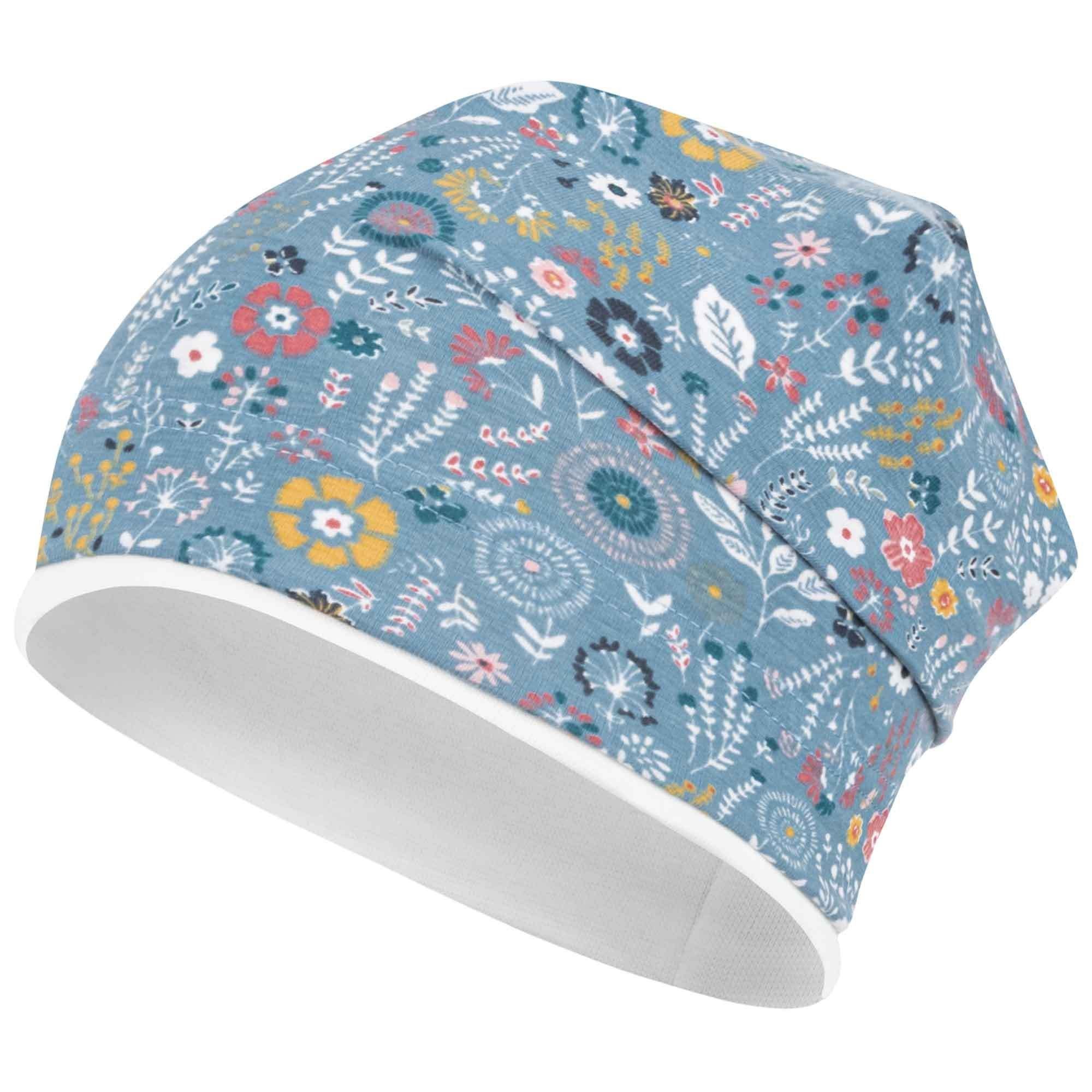 Weiche Kopfbedeckung mit Blumen-Allover-Print in beliebter Beanie-Form. Die Mütze ist elastisch und passt sich der Kopfgröße gut an. Die Stoffmütze ist am Bund doppellagig, sodass die Ohren Ihres Kindes gut geschützt sind. Sie eignet sich gut für den Frühling, den Herbst und kühle Sommertage. Ein perfektes Accessoire für Ihr Mädchen. Die niedliche Mütze bedeckt wunderbar Kopf, Stirn und Ohren des Kindes. Ein schöner Look wird durch das stylishe Stoffdesign kreiert. Tolle Kindermütze im Allover-Print und vielen Farben und zarten Blumen-/Schmetterling-Motiven. Ideal als Schutz vor Wind und direkter Sonneneinstrahlung.