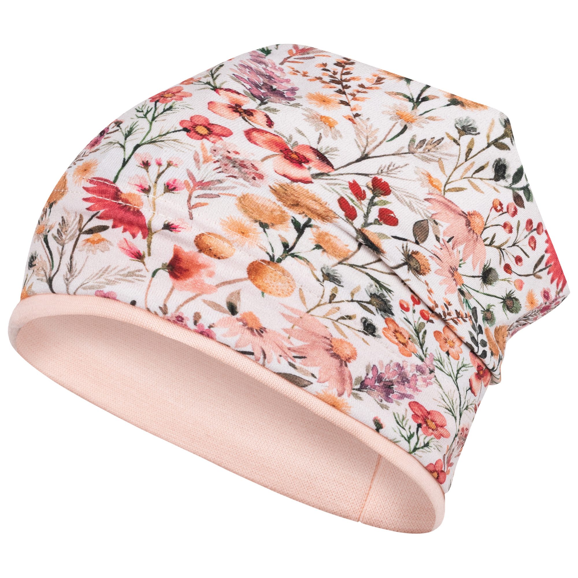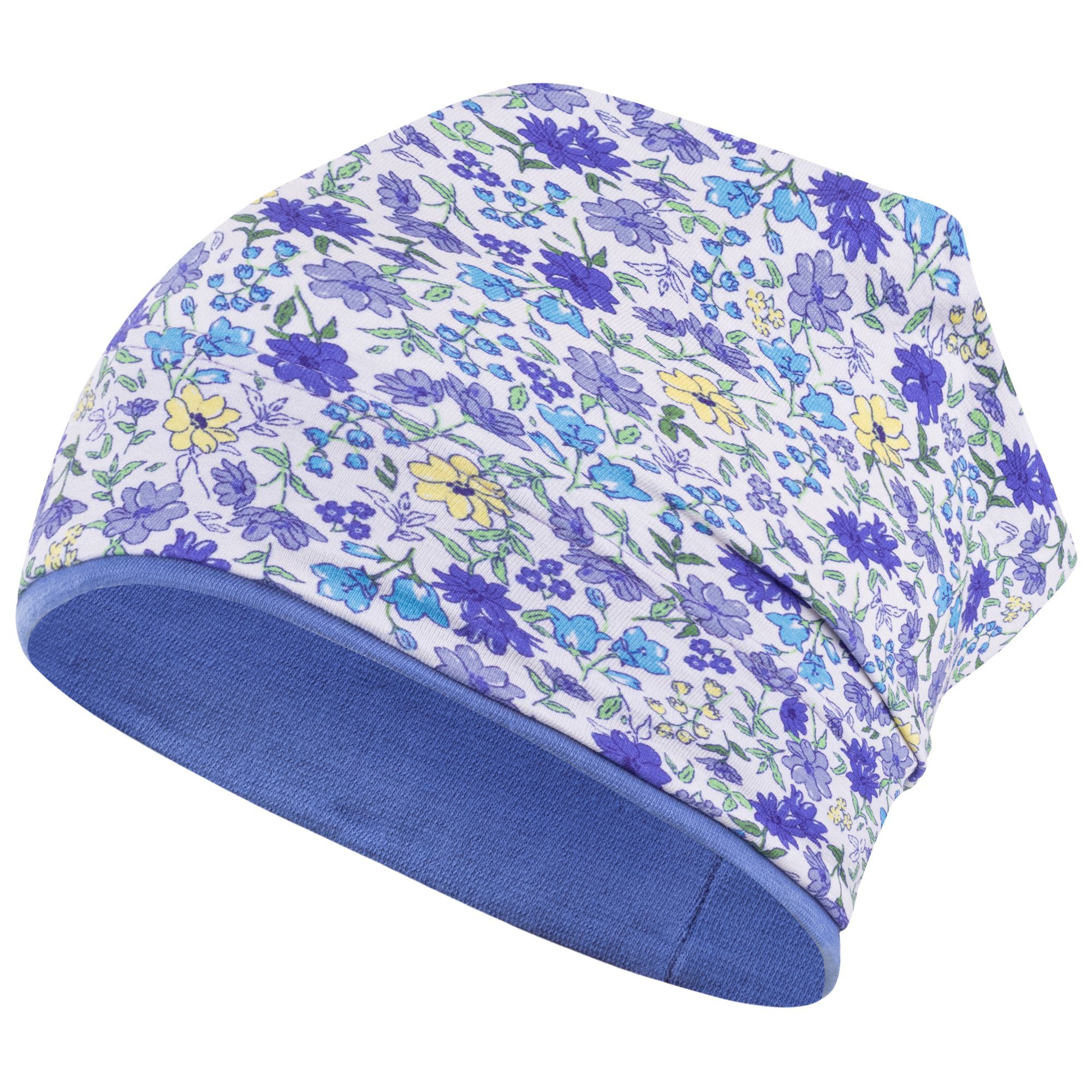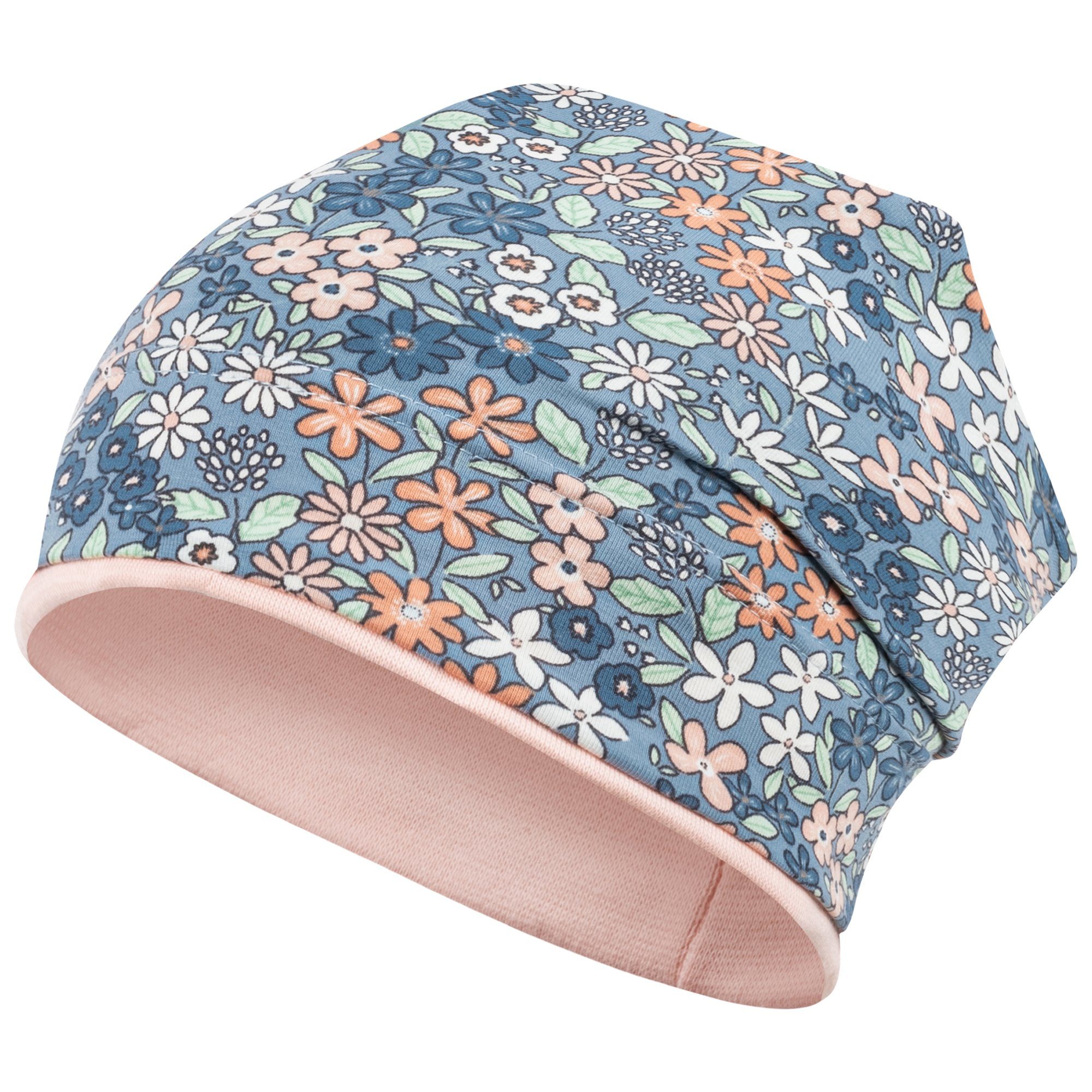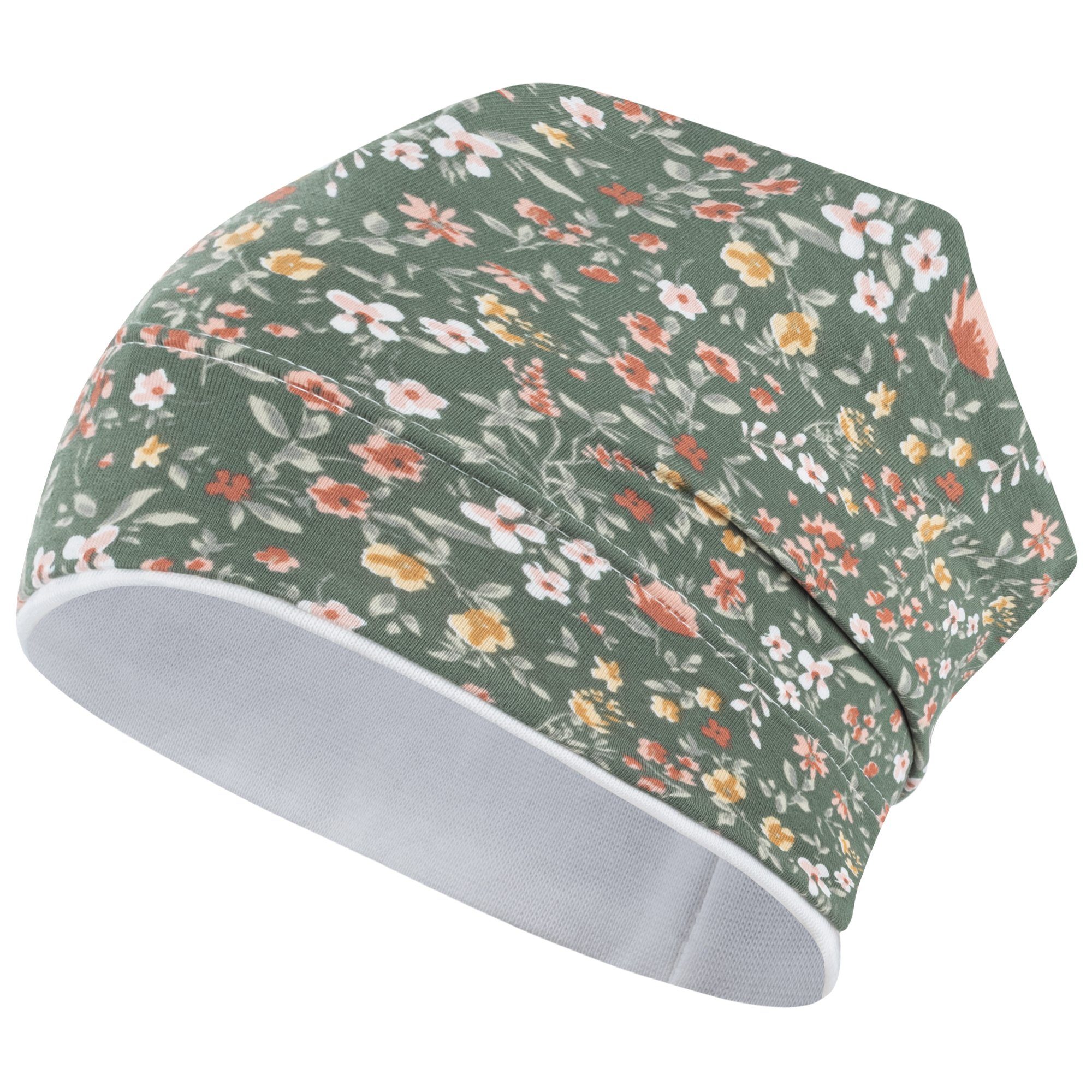Weiche Kopfbedeckung mit Blumen-Allover-Print in beliebter Beanie-Form. Die Mütze ist elastisch und passt sich der Kopfgröße gut an. Die Stoffmütze ist am Bund doppellagig, sodass die Ohren Ihres Kindes gut geschützt sind. Sie eignet sich gut für den Frühling, den Herbst und kühle Sommertage. Ein perfektes Accessoire für Ihr Mädchen. Die niedliche Mütze bedeckt wunderbar Kopf, Stirn und Ohren des Kindes. Ein schöner Look wird durch das stylishe Stoffdesign kreiert. Tolle Kindermütze im Allover-Print und vielen Farben und zarten Blumen-/Schmetterling-Motiven. Ideal als Schutz vor Wind und direkter Sonneneinstrahlung.