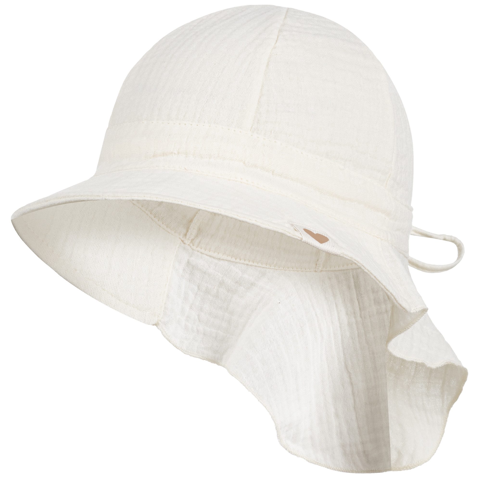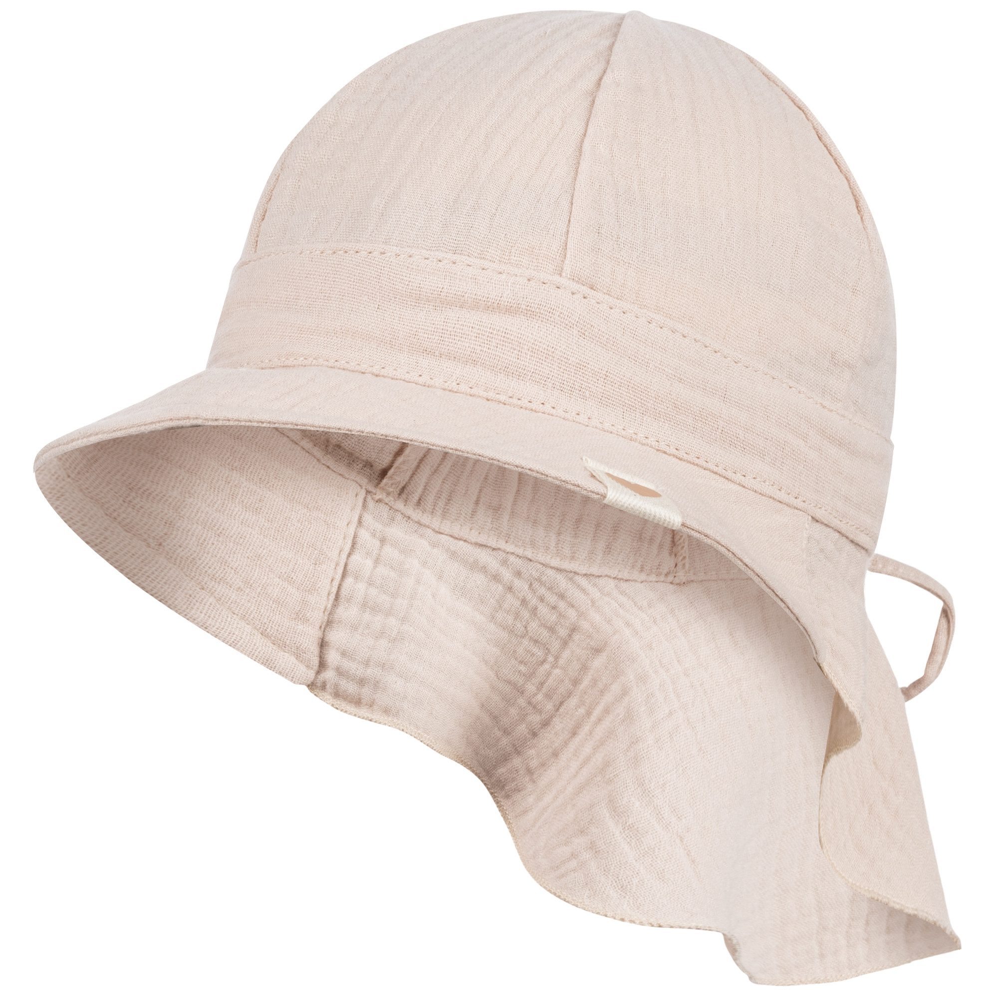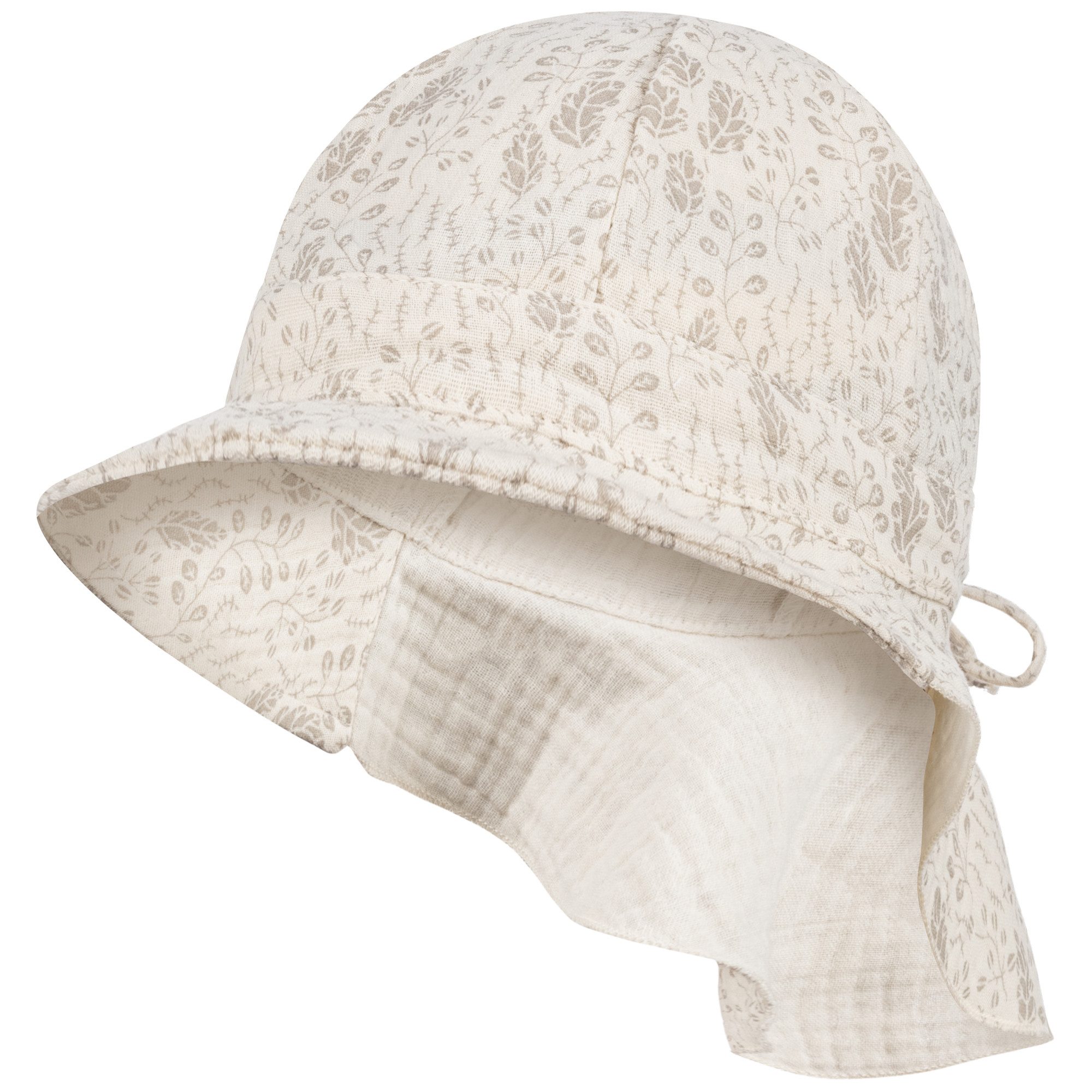 Die Schirmmütze mit Nackenschutz sorgt Dank der Musselin-Qualität bei jeder Temperatur für ein angenehmes Tragegefühl. Ein eingearbeitetes Band, welches hinten zu einer Schleife gebunden wird, sorgt für optimale Passform. Mit Schirmchen und Nackenschutz ist der ganze Kopfbereich schön im Schatten.