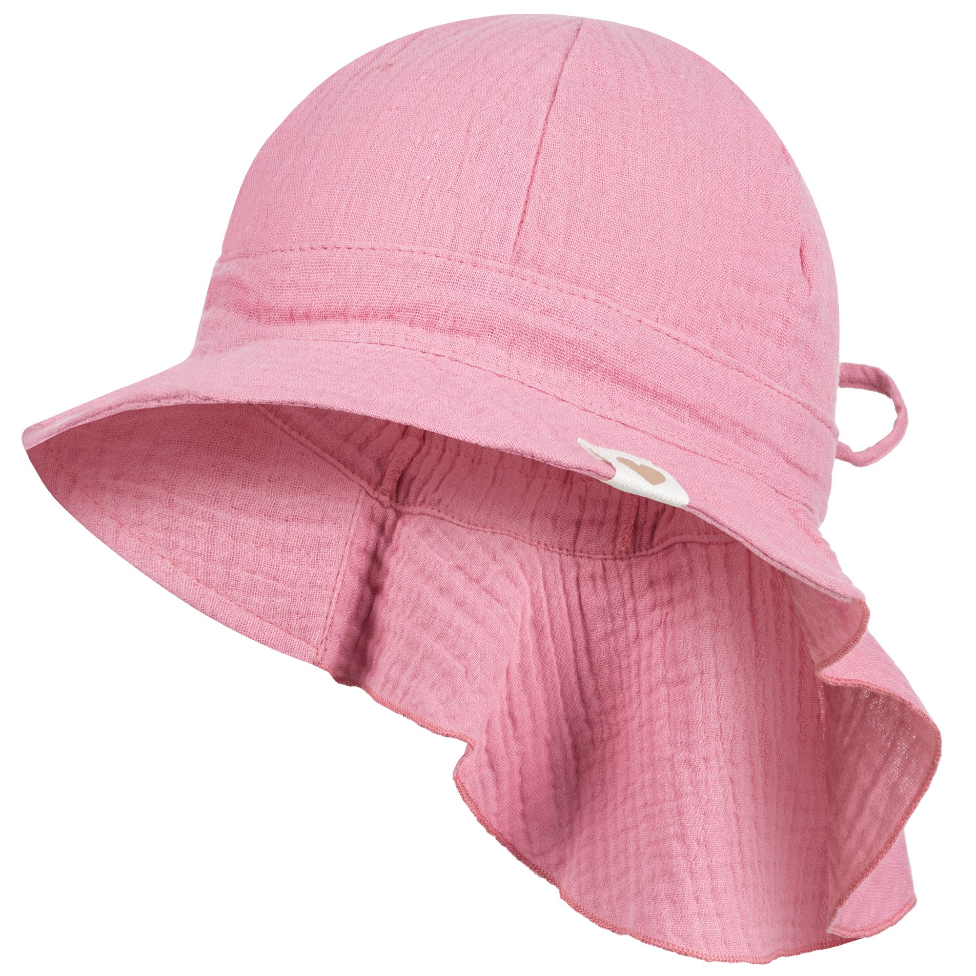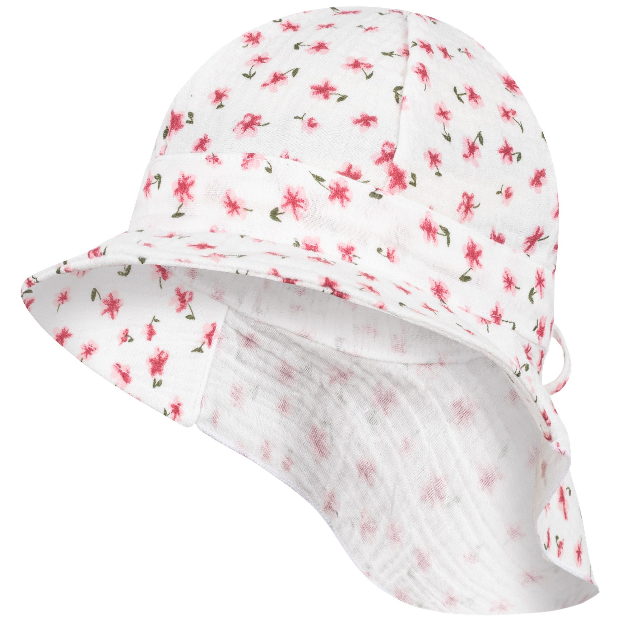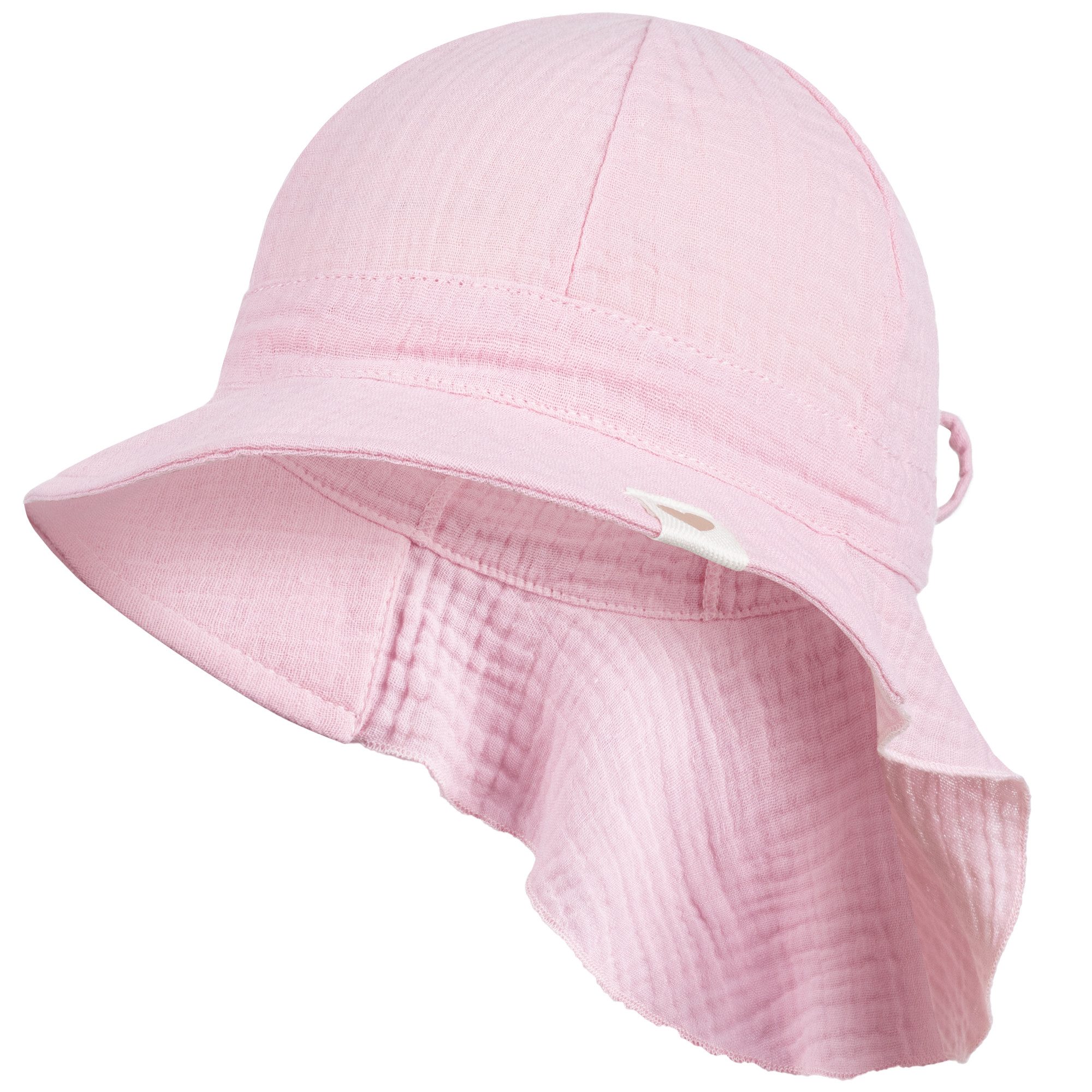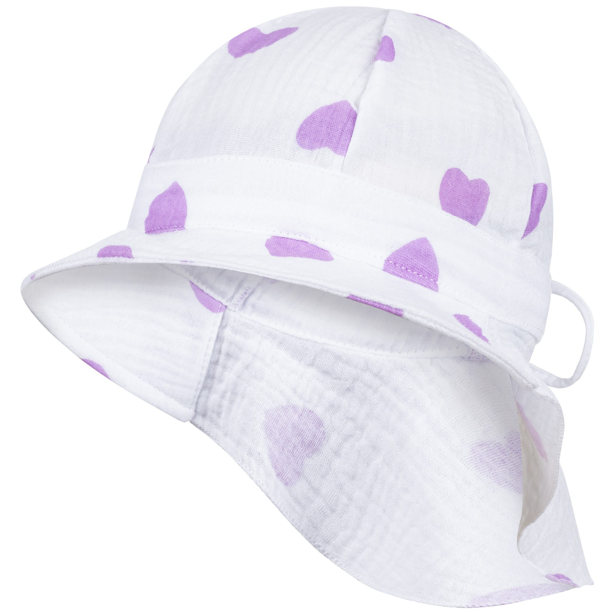 Die Schirmmütze mit Nackenschutz sorgt Dank der Musselin-Qualität bei jeder Temperatur für ein angenehmes Tragegefühl. Ein eingearbeitetes Band, welches hinten zu einer Schleife gebunden wird, sorgt für optimale Passform. Mit Schirmchen und Nackenschutz ist der ganze Kopfbereich schön im Schatten.