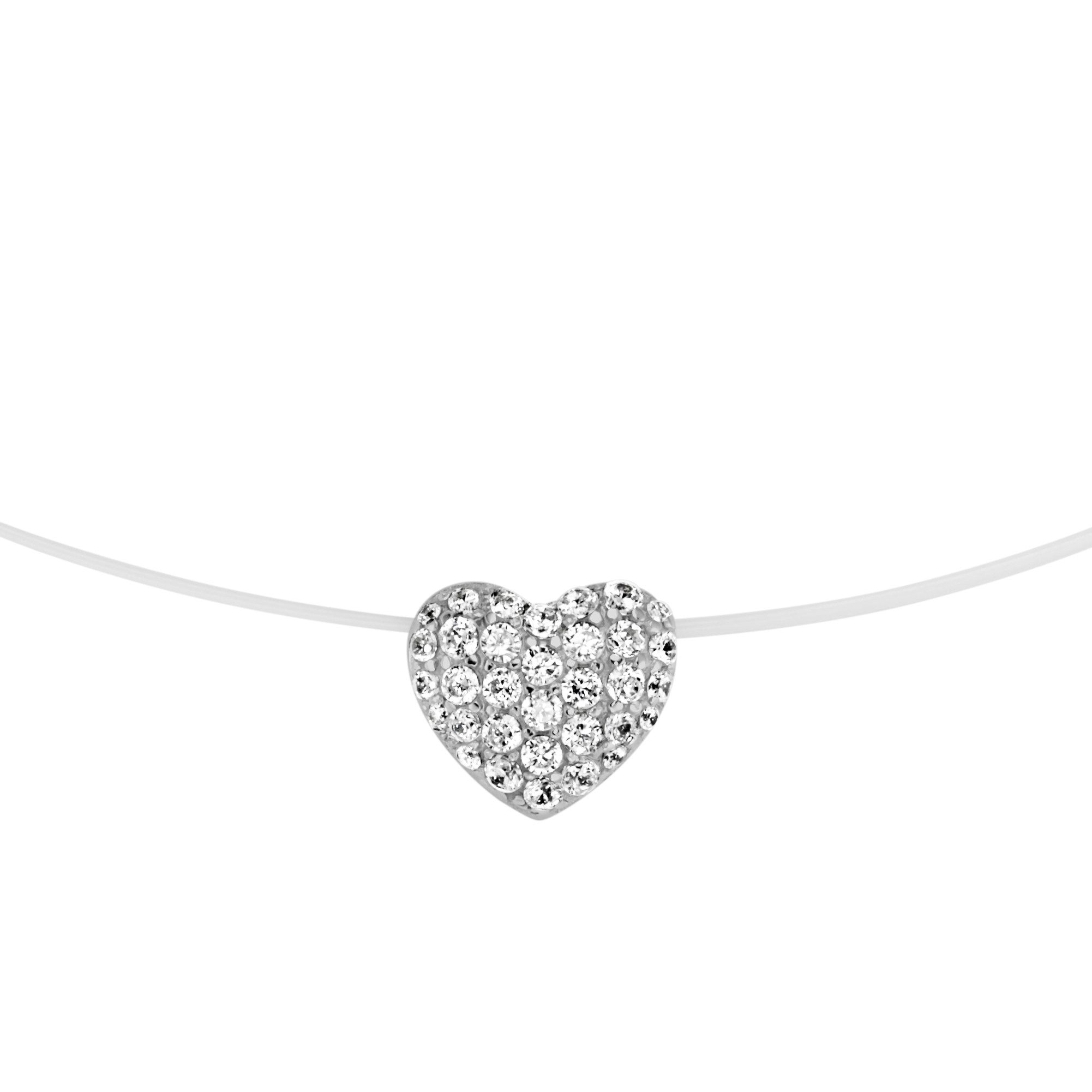 Tauchen Sie ein in die Welt des Glamours mit unserem zauberhaften Collier, das jedem Look einen Hauch von Eleganz verleiht. Dieses bezaubernde Schmuckstück präsentiert ein zartes Herz, besetzt mit funkelnden Zirkonia-Steinen, die das Licht einfangen und reflektieren, um Ihre Schönheit zu unterstreichen. Ein feiner, transparenter Nylonfaden verleiht dem Herz eine schwebende Optik und lässt ihr Dekolleté auf geheimnisvolle Weise erstrahlen. Gefertigt aus hochwertigem Sterling-Silber 925 strahlt dieses Collier eine zeitlose Eleganz aus und ist ein Symbol für edlen Geschmack und Raffinesse. Die rhodinierte oder vergoldete Oberfläche verleiht dem Schmuckstück eine zusätzliche Brillanz und Langlebigkeit, während der feine Nylonfaden das Design leicht und luftig wirken lässt. Der praktische Karabinerverschluss ermöglicht ein einfaches An- und Ausziehen und bietet gleichzeitig Sicherheit, damit Sie sich den ganzen Tag über sorgenfrei an Ihrem Schmuck erfreuen können. Die Длина des Colliers ist variabel, so dass Sie es ganz nach Ihrem persönlichen Stil anpassen können. Verwöhnen Sie sich selbst oder überraschen Sie einen geliebten Menschen mit diesem atemberaubenden Halsschmuck. Es ist das perfekte Geschenk und wird sicherlich bewundernde Blicke auf sich ziehen. Das Schmuckstück zeichnet sich durch die Verwendung von qualitativ hochwertigen Edelmetallen, sowie exzellenter Verarbeitung aus und unterliegt strengsten Qualitätskontrollen. Hierdurch erreichen wir einen hohen Tragekomfort, lange Haltbarkeit und beste Kundenzufriedenheit. Jedes Schmuckstück ist eine Einzelanfertigung und kann daher eine Toleranz in der Размер aufweisen.