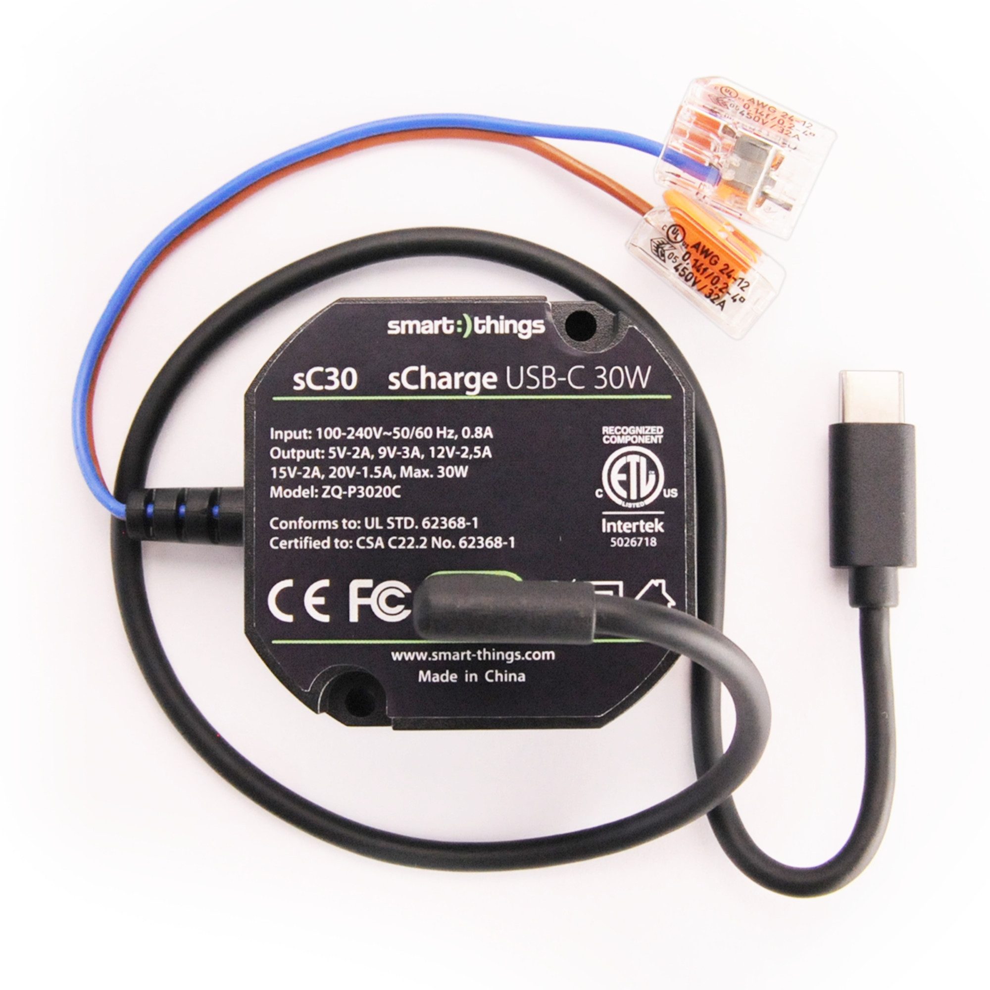 30W Unterputz-Stromversorgung 230V zu USB-C PD, inkl. Kabel