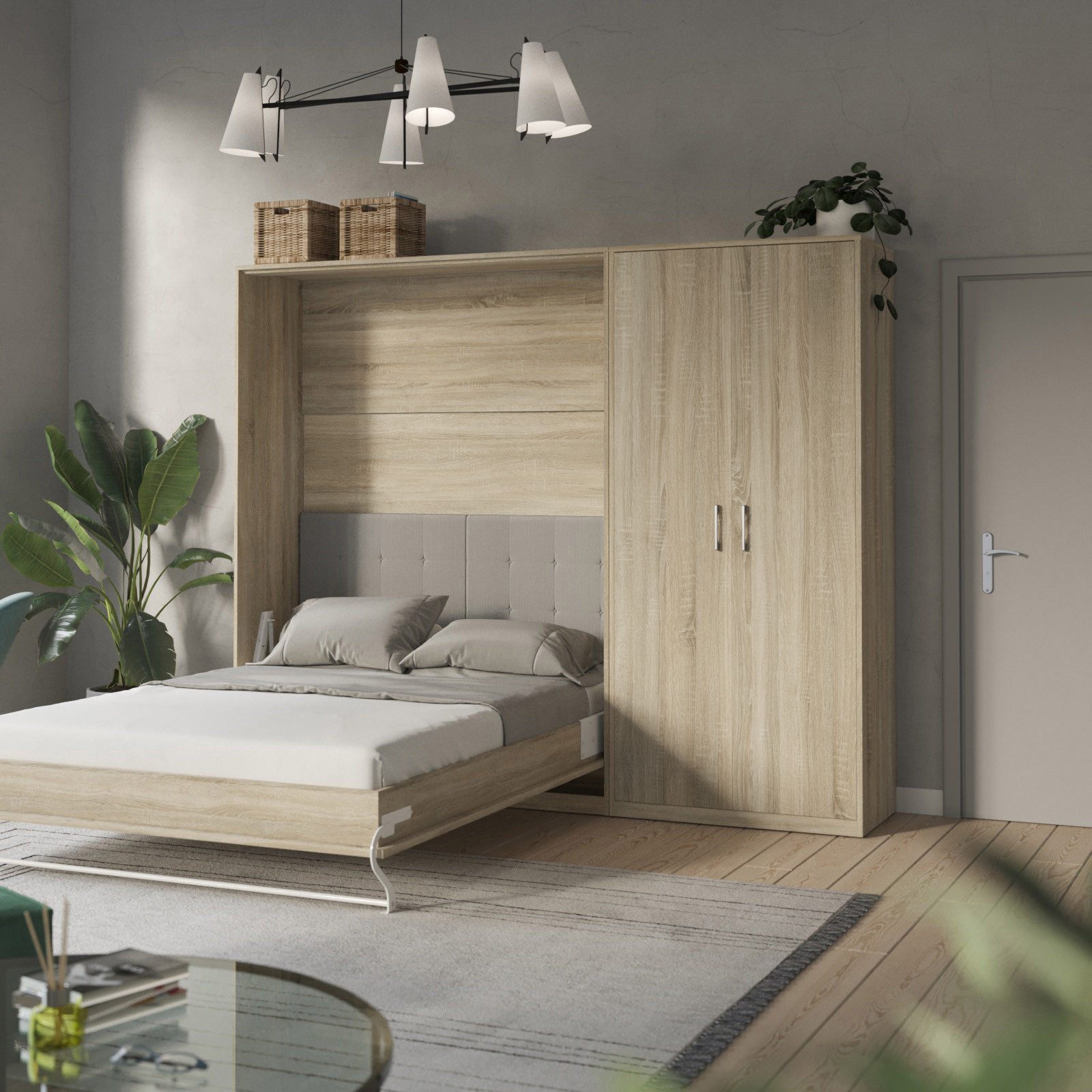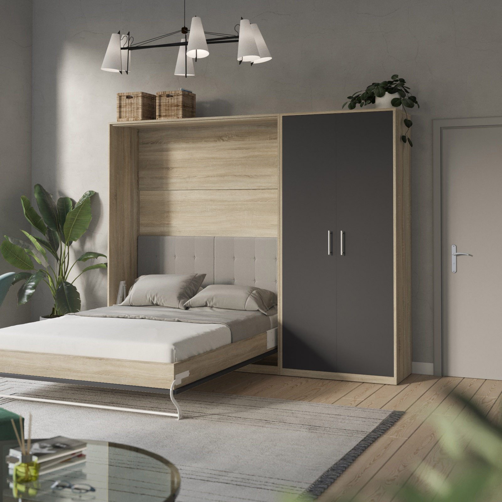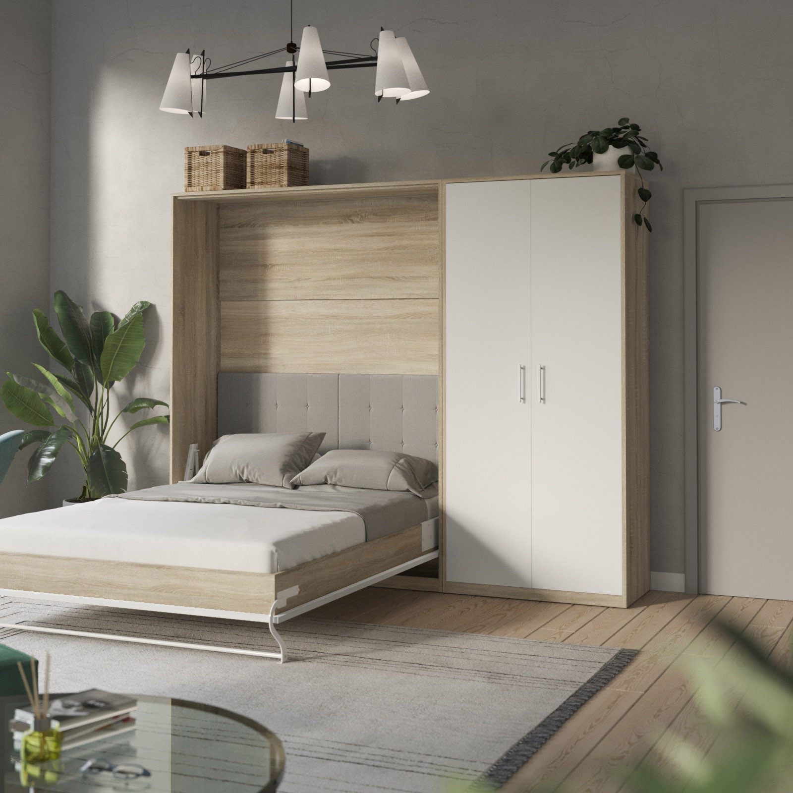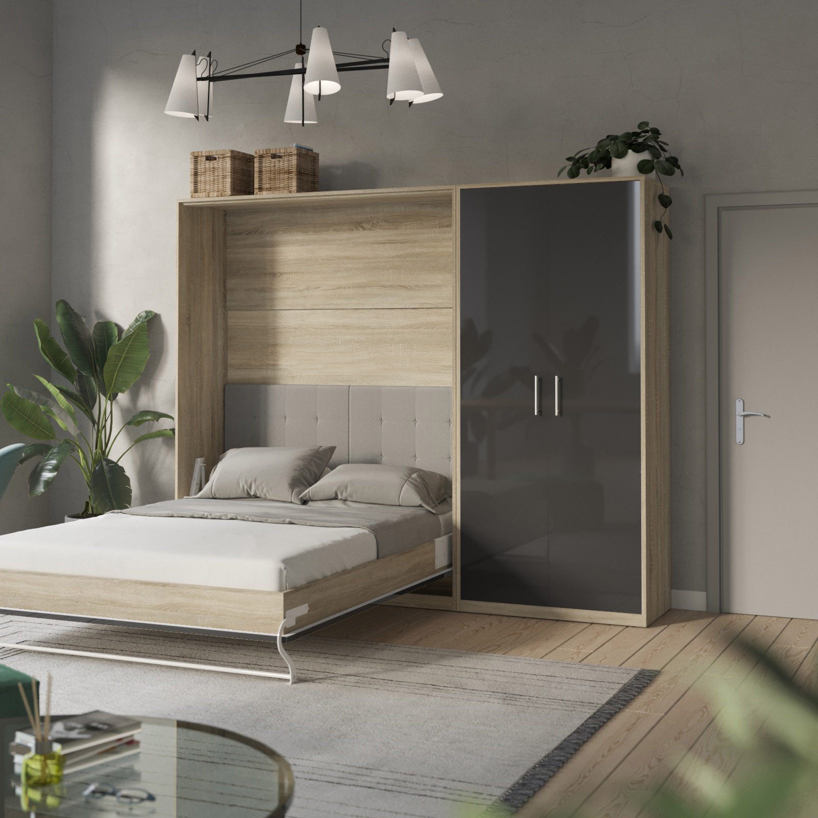 Das Schrankbett ist aus hochwertigen MDF/Spanplatte hergestellt. Die Front besteht aus 4 Teilen.