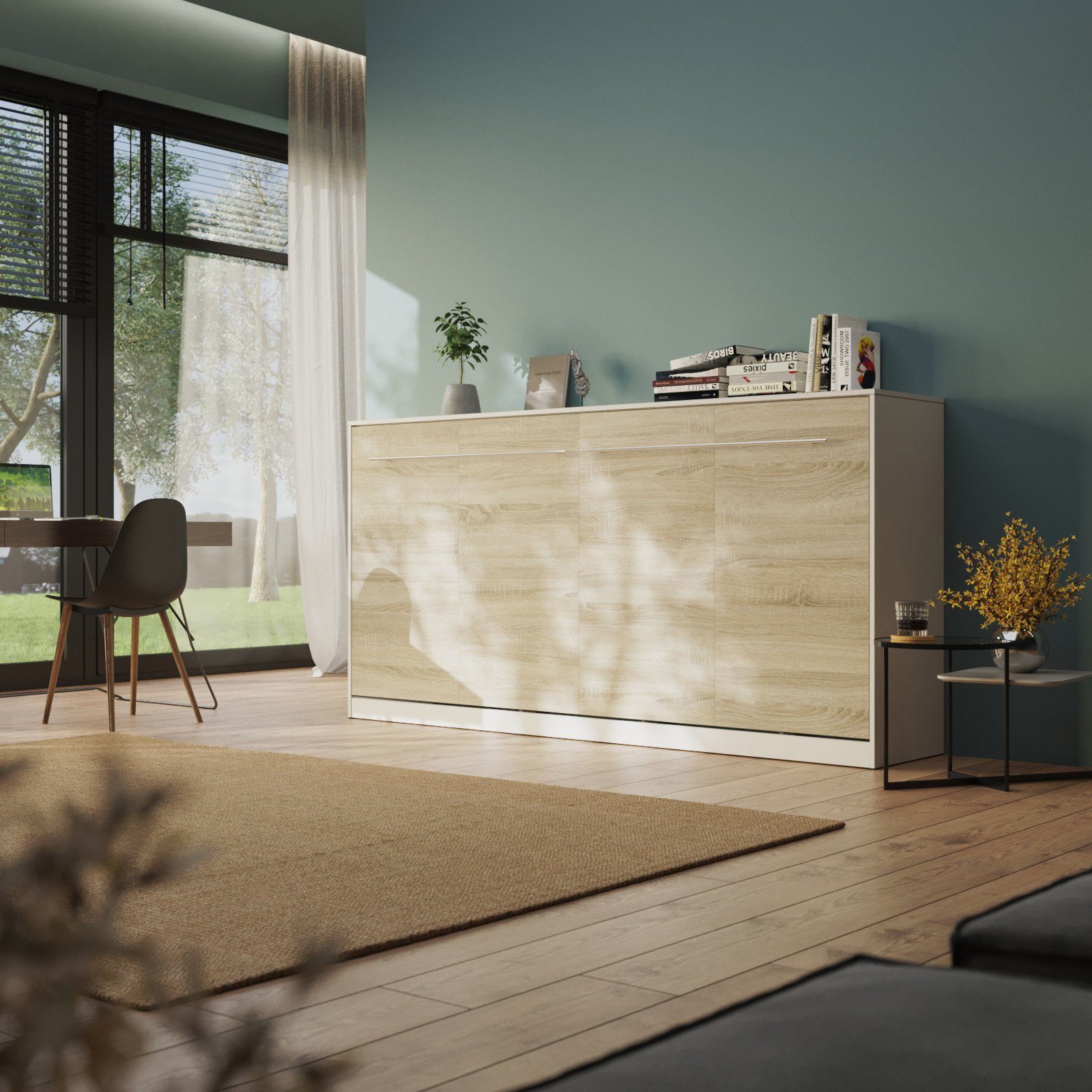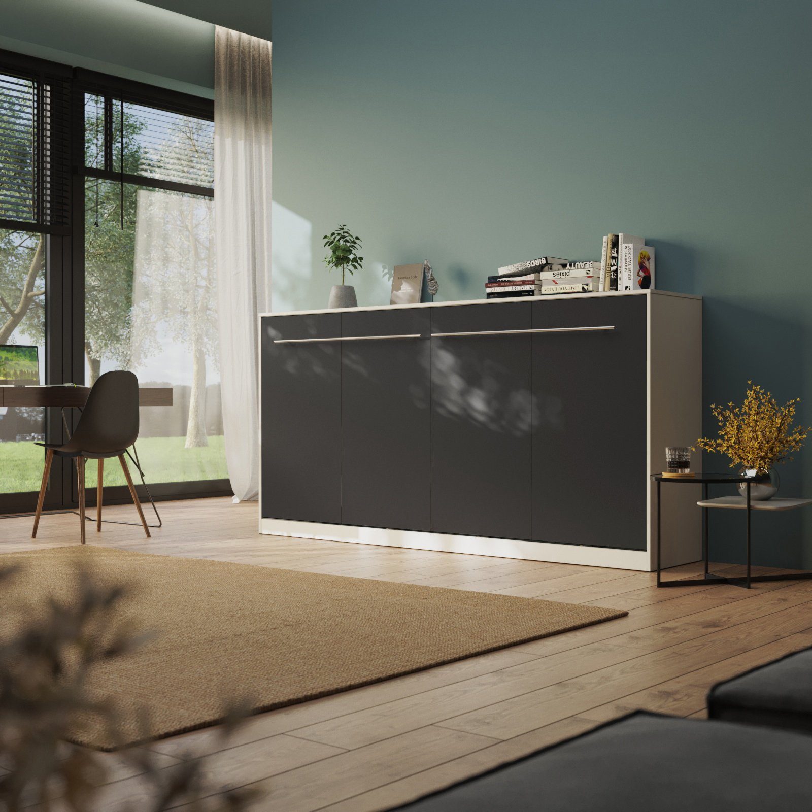 Wissenswertes | Gasdruckfedern unterstützen das Auf- und Zuklappen des Bettes Wandbefestigung erforderlich. Inkl. zwei Spanngurten zur Fixierung der Matratze |