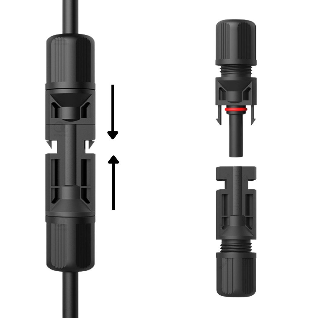 Der Solarstecker ist für den Einsatz an Solarkabel konzipiert und zum Anschluss von PV-Modulen verwendet. Geeignet für Solarkabel mit einem Querschnitt von 4 mm² - 6 mm².
