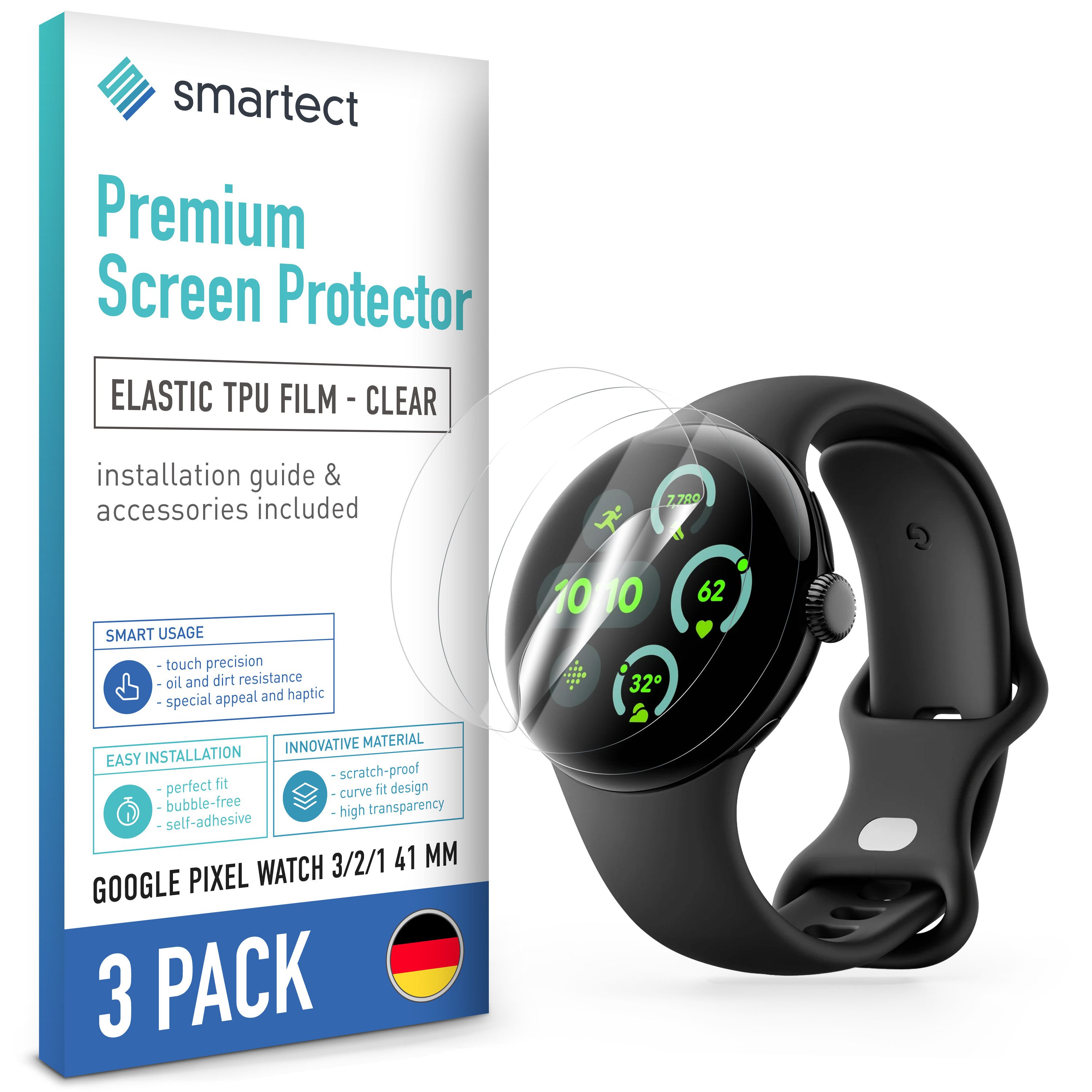 Maximale Passgenauigkeit: Die TPU-Folie ist zu 100% kompatibel mit dem Produkt Google Pixel Watch 3 / 2 / 1 41 mm