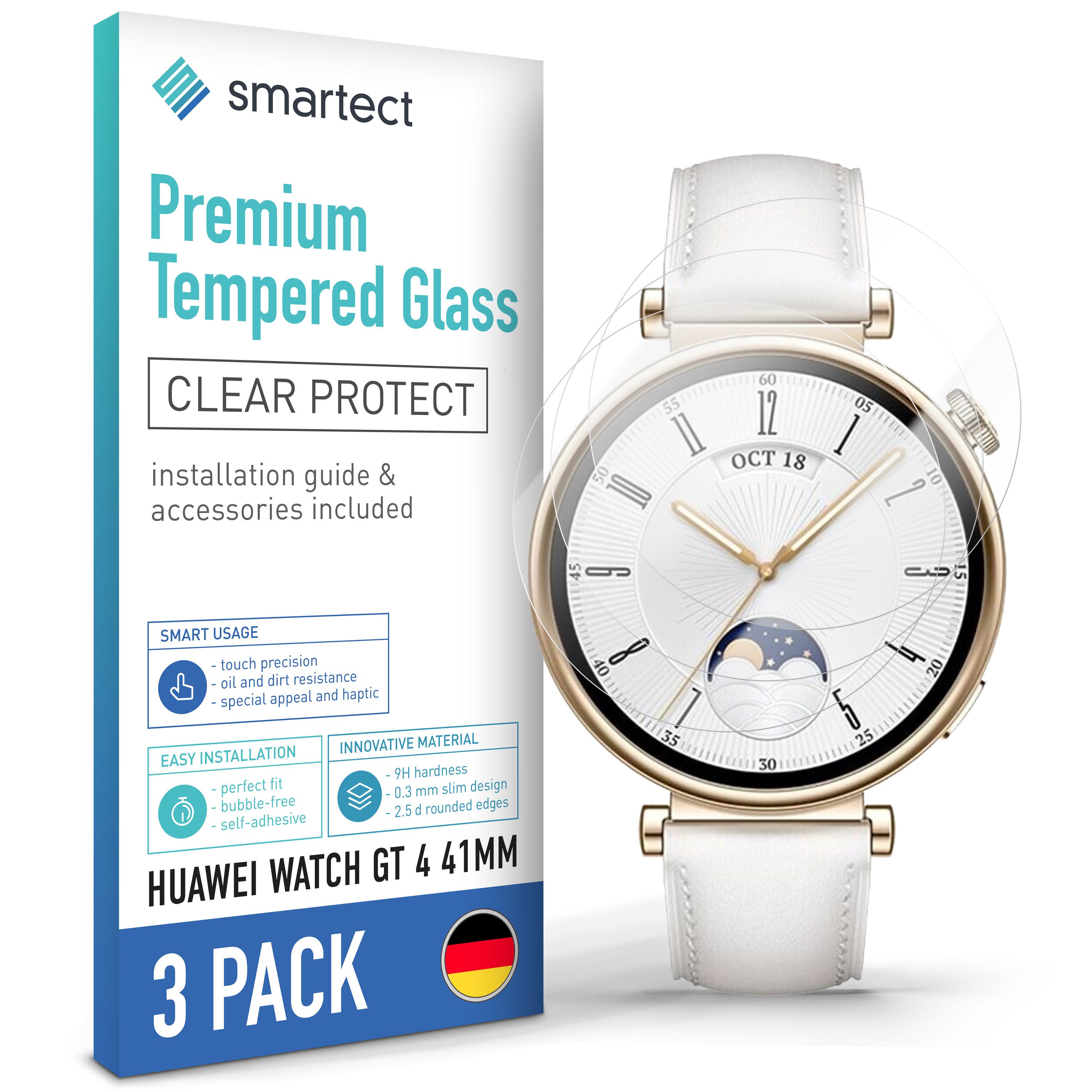 Maximale Passgenauigkeit: Die Glasfolie ist zu 100% kompatibel mit dem Produkt Huawei Watch GT 4 41mm. Bitte beachten Sie, dass bei einem gerundeten Display lediglich die horizontale Fläche vom Schutzglas bedeckt wird