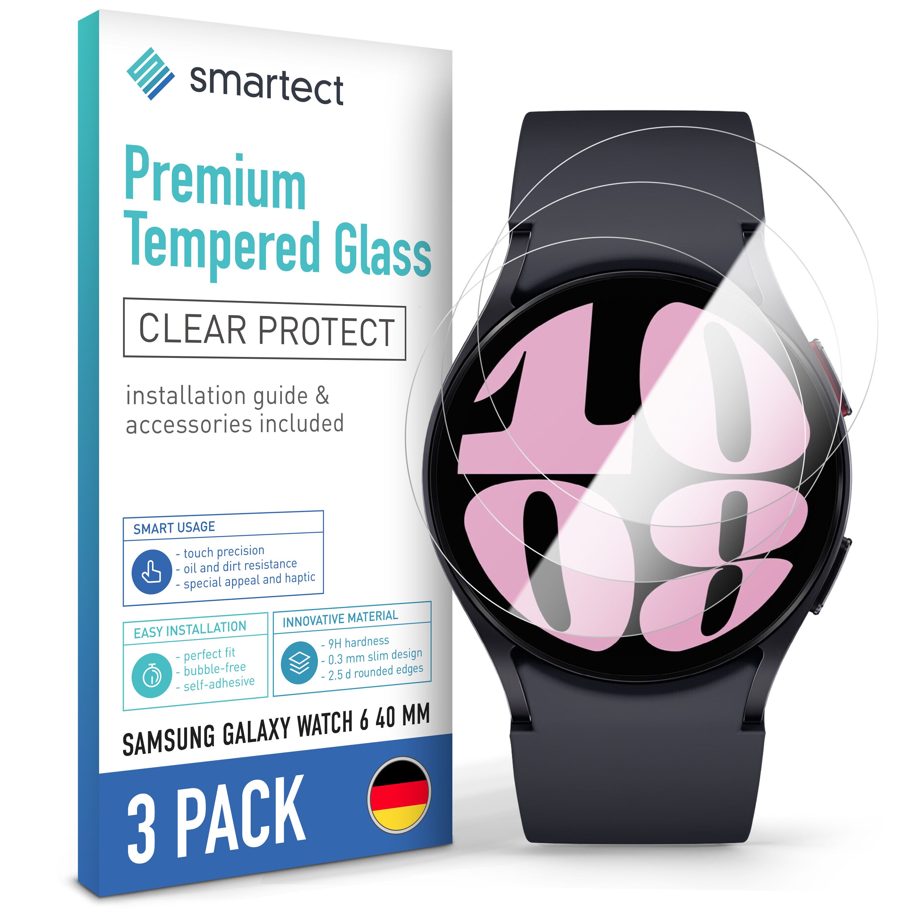 Maximale Passgenauigkeit: Die Glasfolie ist zu 100% kompatibel mit dem Produkt Samsung Galaxy Watch 6 40mm. Bitte beachten Sie, dass bei einem gerundeten Display lediglich die horizontale Fläche vom Schutzglas bedeckt wird
