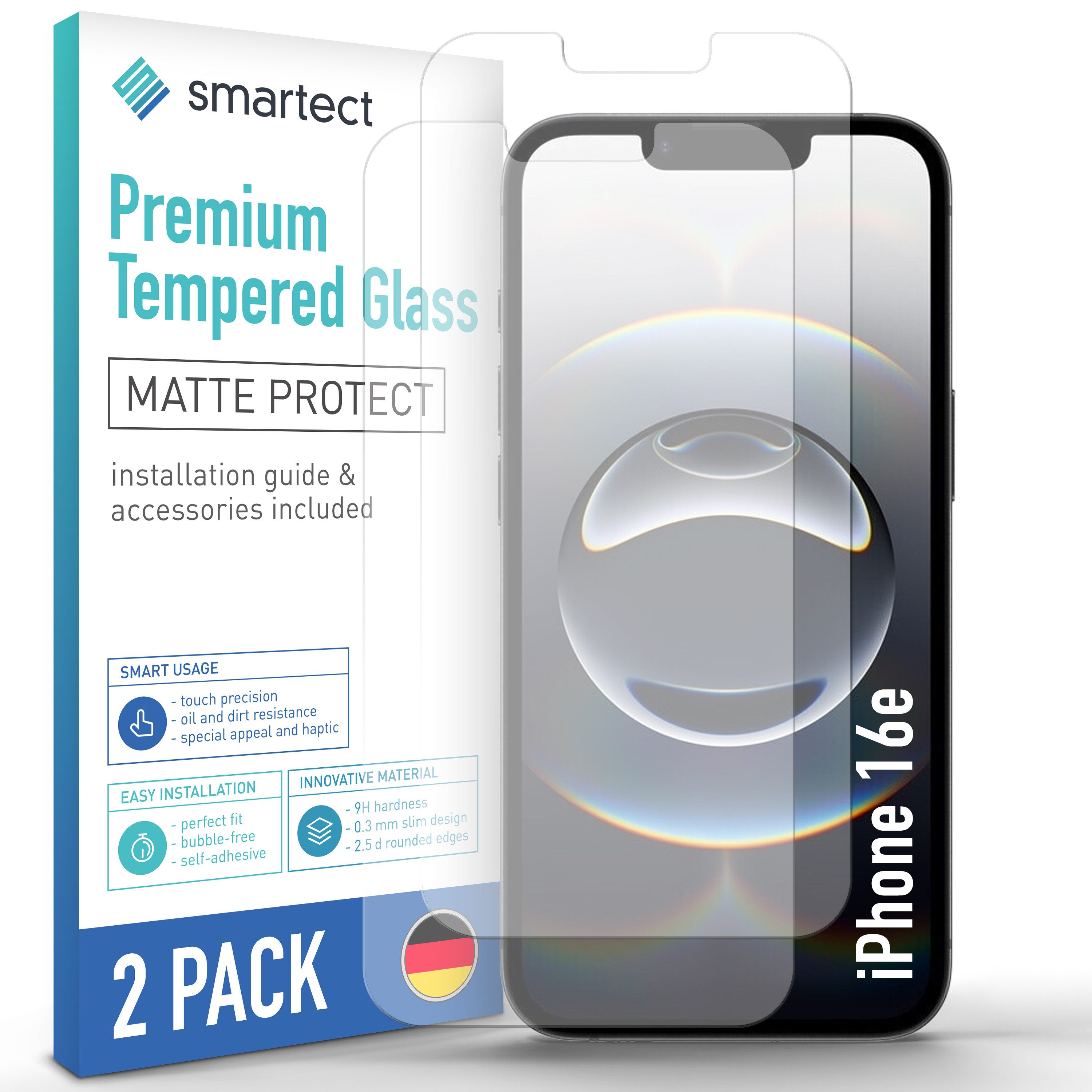 Maximale Passgenauigkeit: Die Glasfolie ist zu 100% kompatibel mit dem Produkt iPhone 16e. Bitte beachten Sie, dass bei einem gerundeten Display lediglich die horizontale Fläche vom Handyschutzglas bedeckt wird