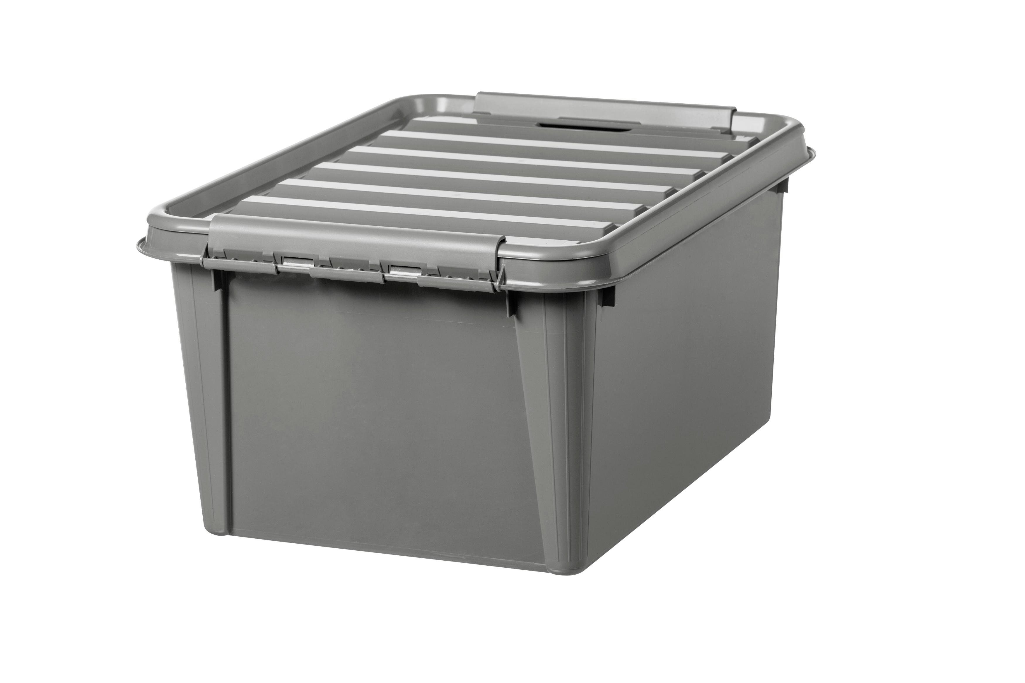 Eine Serie von Aufbewahrungsboxen aus 100 % recyceltem Kunststoff. Langlebig, umweltfreundlich und besonders für Wohnmobil, Caravan, Zelt, Abstellraum oder Garage geeignet. Die Kisten sind nestbar ohne Deckel und stapelbar mit aufgesetzten Deckeln. Die stabilen Clips halten den Deckel fest an seinem Platz. Perfekt zum Mitnehmen jeglicher Ausrüstung und ideal für ein wenig Ordnung in jedem Stauraum.