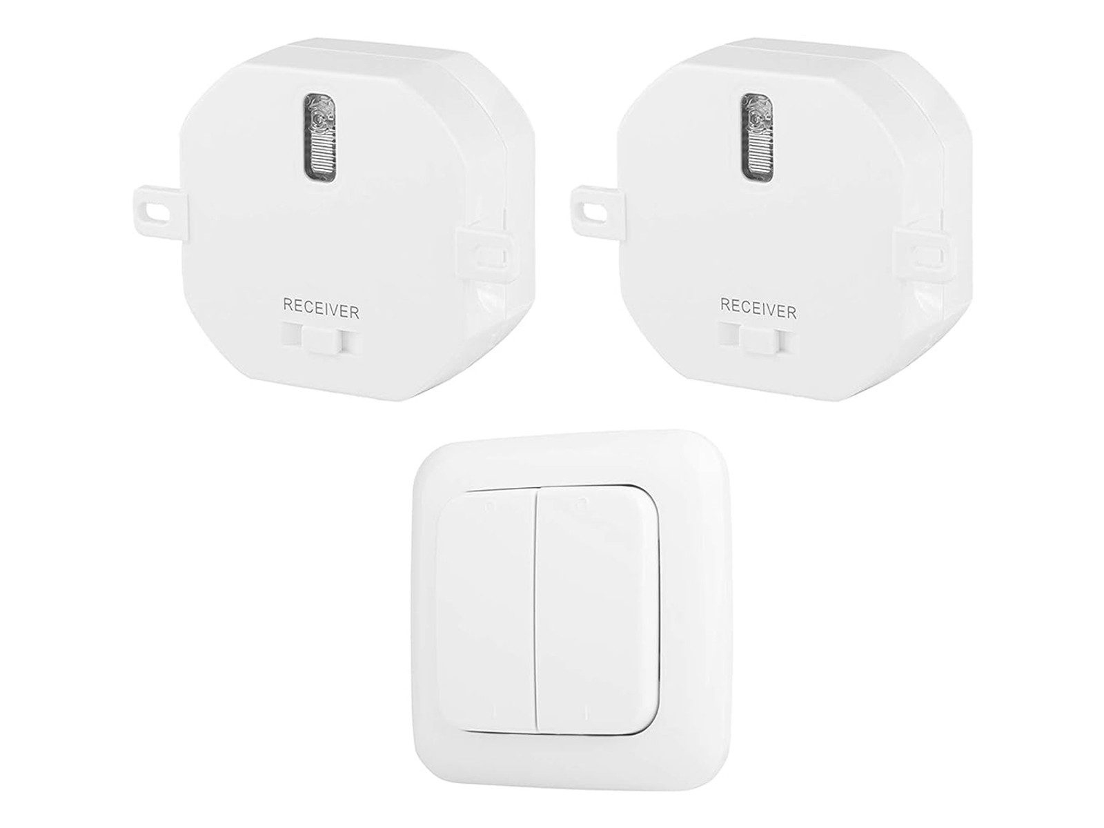 Lieferumfang | 2x Funk-Einbauschalter + 1x Funk-Wandschalter Taster |