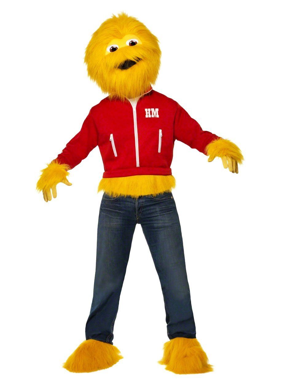 Das rote Oberteil des Kostüms kommt wie eine Trainingsjacke daher. Um den sportiven Charakter zu unterstreichen, sind die Reißverschlüsse und die Längsstreifen an den Ärmeln in weiß abgesetzt. Auf der linken Brust stehen in Großbuchstaben die Initialen des Honey Monster und auf dem Rücken ist sein Name noch einmal komplett zu lesen. Am Saum der Jacke sitzt eine Borte aus goldgelbem, flauschigem Kunstpelz. Für die Hände gibt es ein Paar große Handschuhe, deren Oberseite ebenfalls mit dichtem Kunstfell besetzt ist. Die beiliegenden plüschigen Schuhstulpen können ganz einfach über die eigenen Schuhe gezogen werden und halten mittels Gummizug unter der Sohle.