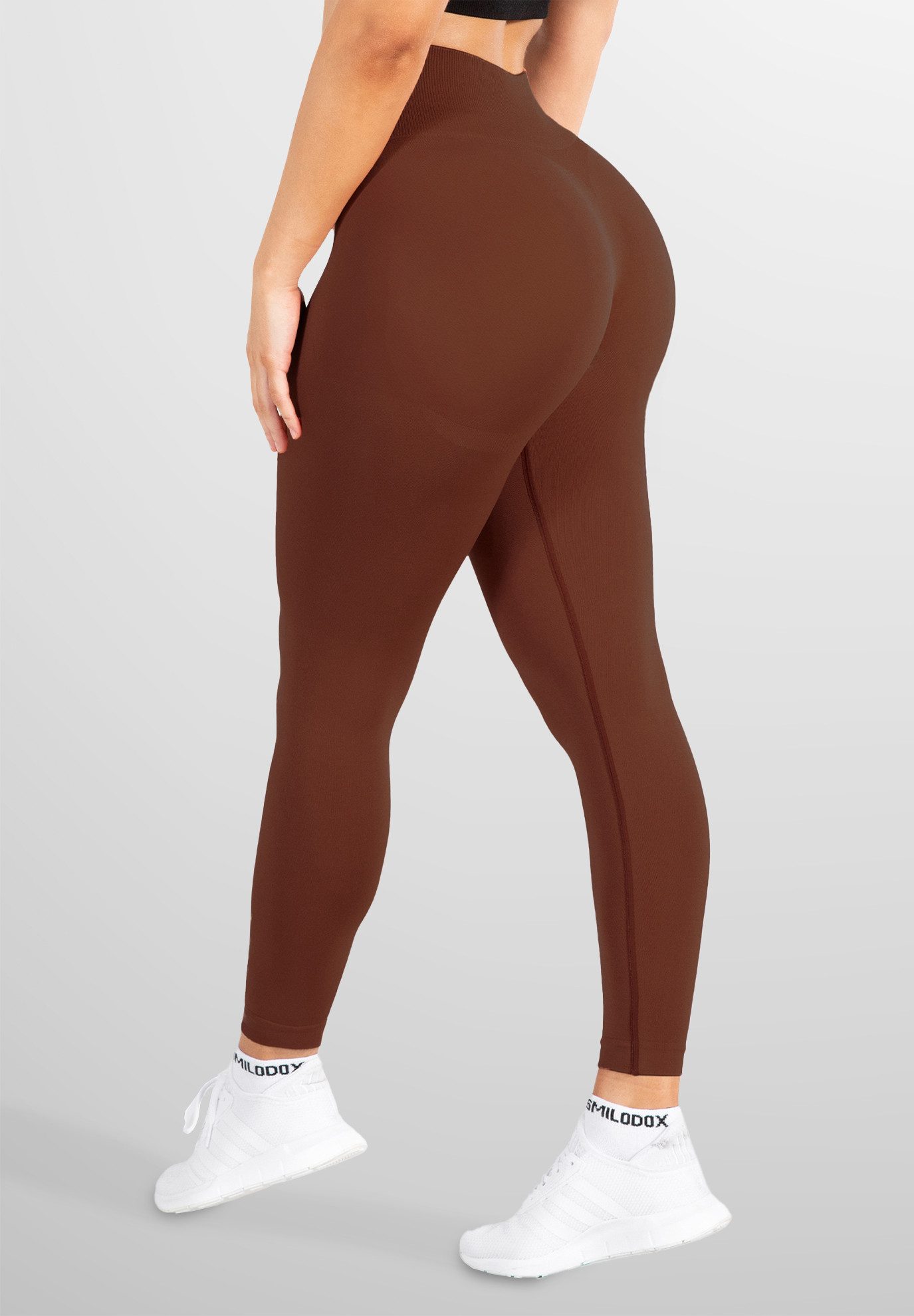 Die Smilodox Leggings Amaze Pro ist aus einem angenehmen, weichen und strapazierfähigen Material gefertigt. Sie ist atmungsaktiv und durch den sehr eng gewebten Seamless-Stoff blickdicht. Die Leggings passt sich ideal an deine Körperform an und ist rutschfest. Sie bietet eine sehr hohe Flexibilität und Bewegungsfreiheit. Wir empfehlen bei den Farben beige und aprikose eine Nummer größer als üblich zu bestellen, um Eventuelles durchschimmern bzw. Abzeichnen von Tattoos oder Unterwäsche zu vermeiden.