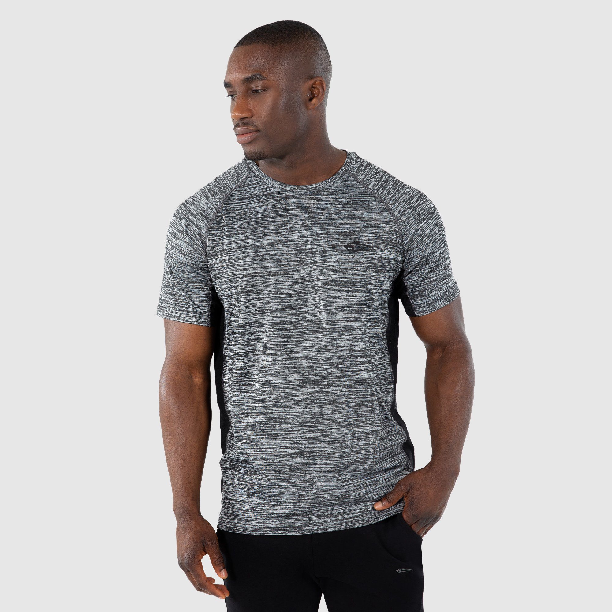 Das neue Herren Sportshirt Force ist dein perfekter Buddy im Gym und Alltag. Das Oberteil ist Slim Fit und sitzt wie angegossen auf deiner Haut. Das Shirt hat Einsätze unter dem Arm und an der Seite, welche aus Meshstoff bestehen und atmungsaktiv sind. Dadurch wirst du auch bei sehr anstrengenden Sessions optimal unterstützt.