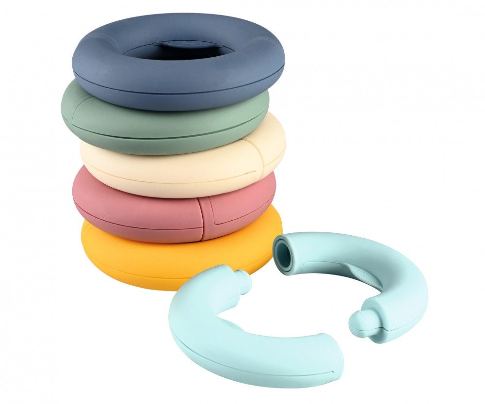 Die 12 Teile des Little Smoby Tubo können zu den unterschiedlichsten Formen zusammengesteckt werden (Schlange, Stern, Scheiben, Ringe...) und sind ineinander verkett- und stapelbar.