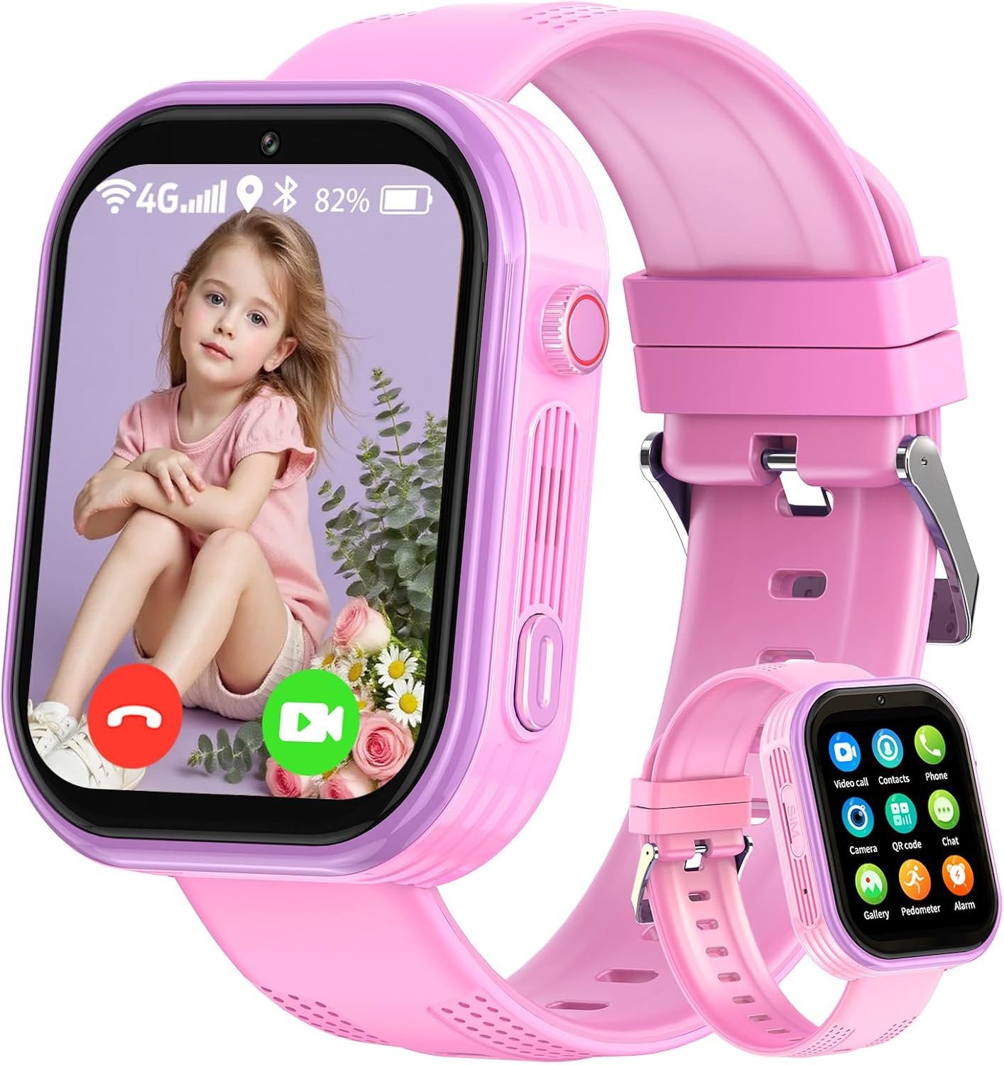 Die Smartwatch überzeugt mit einem großen 1,7 Zoll HD IPS-Touchscreen, der Inhalte klar und farbenfroh darstellt. Das weiche Silikonarmband ist hautfreundlich und passt sich angenehm dem Handgelenk an. Dank IP67-Spritzwasserschutz bleibt die Uhr auch beim Händewaschen oder Spielen geschützt. Mit WLAN- und 4G-Unterstützung ist die Verbindung stabil und schnell. Damit eignet sich die Uhr nicht nur als Sicherheits- und Kommunikationsmittel, sondern auch als modernes Accessoire für Kinder von 6 bis 14 Jahren.