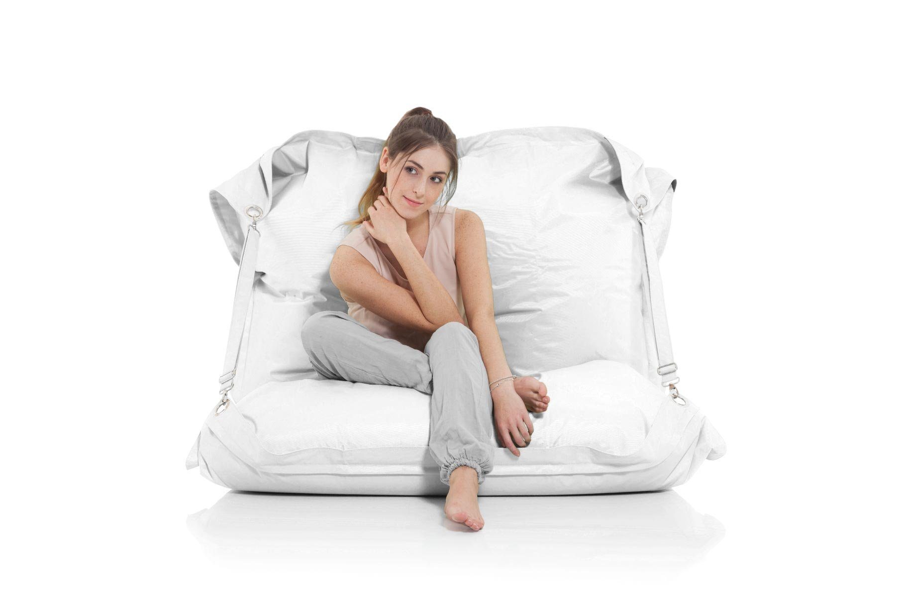 Der Outdoor Sitzsack ist gegenüber den "Standard"-Modellen von Smoothy ® und anderen Premium-Sitzsack-Herstellern nicht nur größer, sondern auch aus extra robustem und speziell für den Einsatz im Freien konzipiertem 420D Nylon ist schmutz- und wasserfest und trotzt jedem Wetter. Zusätzlich ist der Smoothy Outdoor Sitzsack jetzt noch bequemer, dank zwei zusätzlicher Relax und Komfort Straps, also zwei Gurten, die in zwei unterschiedlichen Positionen fixiert werden können, um eine angenehme Sitz- oder Liegeposition mit fester Lehne zu schaffen. Perfekt fürs angenehmes Lesen oder entspanntes Abhängen im Freien (oder selbstverständlich auch drinnen in den kühleren Jahreszeiten.