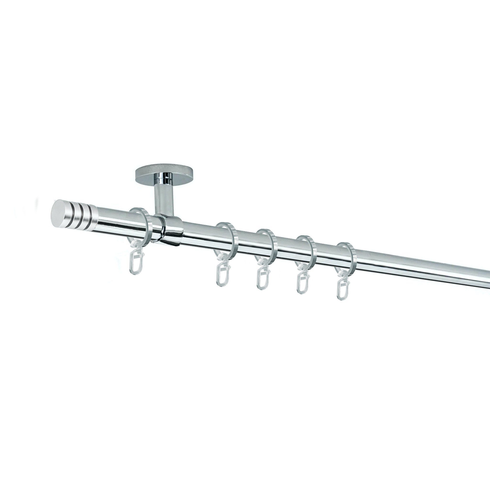 SN Deco Stilgarnitur Stahlrohr Durchmesser 19 mm, Komplettset mit Endstücken, Trägern und Ringen (Träger mit Montageplatte fur einfache und schnelle Montage wahlweise an Wand oder Decke)