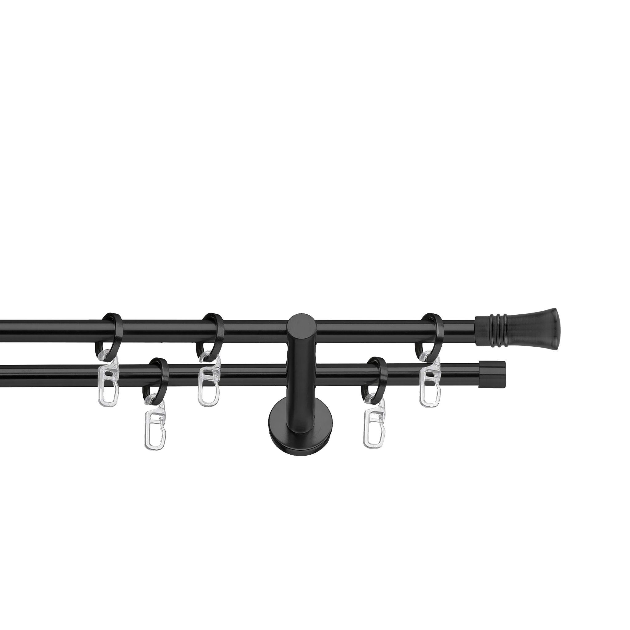 SN Deco 2-lauf Stilgarnitur, Stahlrohr Durchmesser 19 mm, Komplettset mit Endstücken, Trägern und Ringen (Träger mit Montageplatte fur einfache und schnelle Montage)