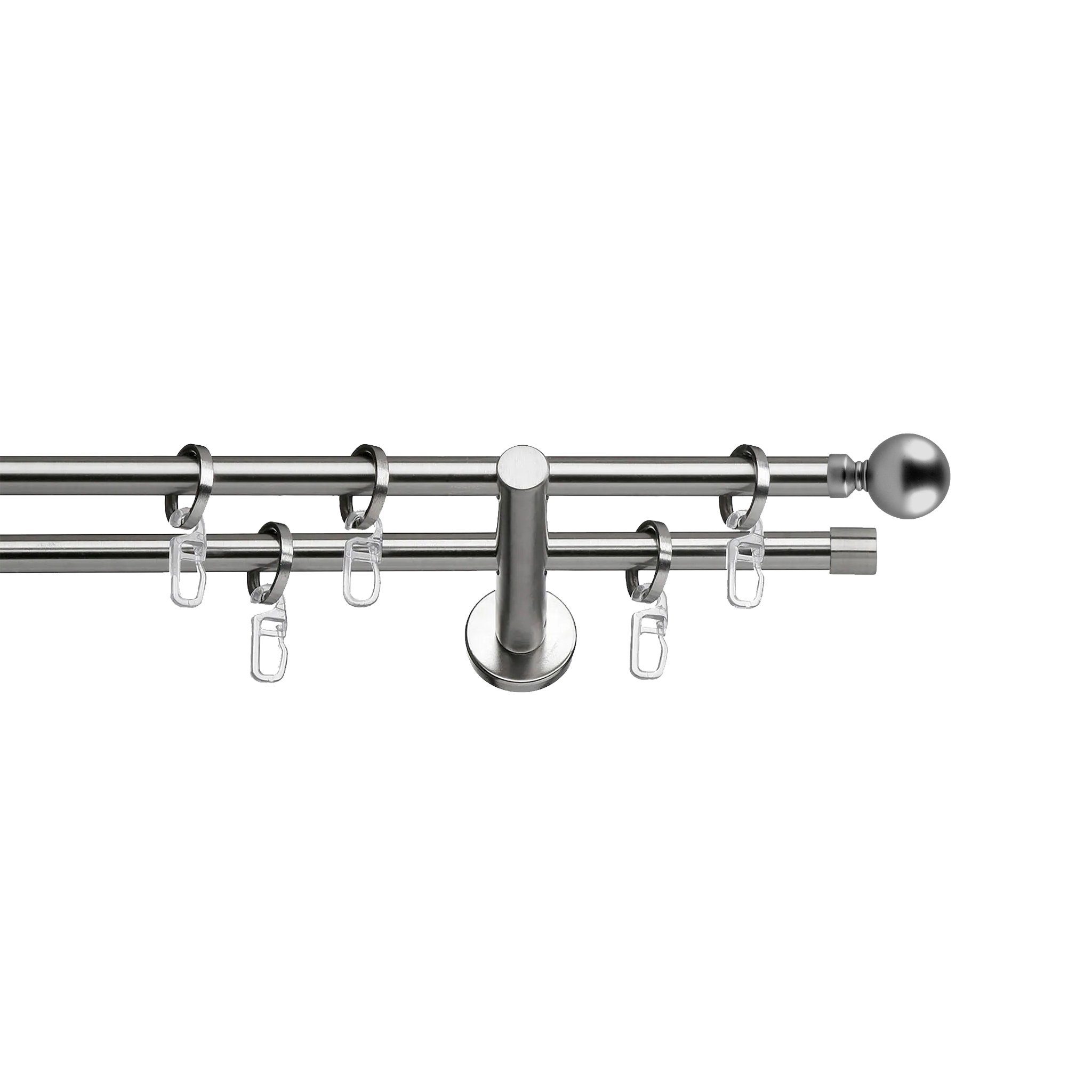 SN Deco 2-lauf Stilgarnitur, Stahlrohr Durchmesser 19 mm, Komplettset mit Endstücken, Trägern und Ringen (Träger mit Montageplatte fur einfache und schnelle Montage)