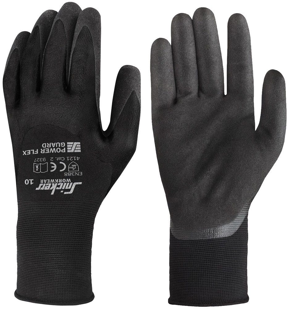Robust und sicher. Nahtlose Arbeitshandschuhe mit Handflächen- und Fingerbeschichtung. Wasserdichte und haltbare Nitrilbeschichtung schützt die Hände unter rauen und nassen Bedingungen. Bietet einen perfekten Grip. EN 388.
