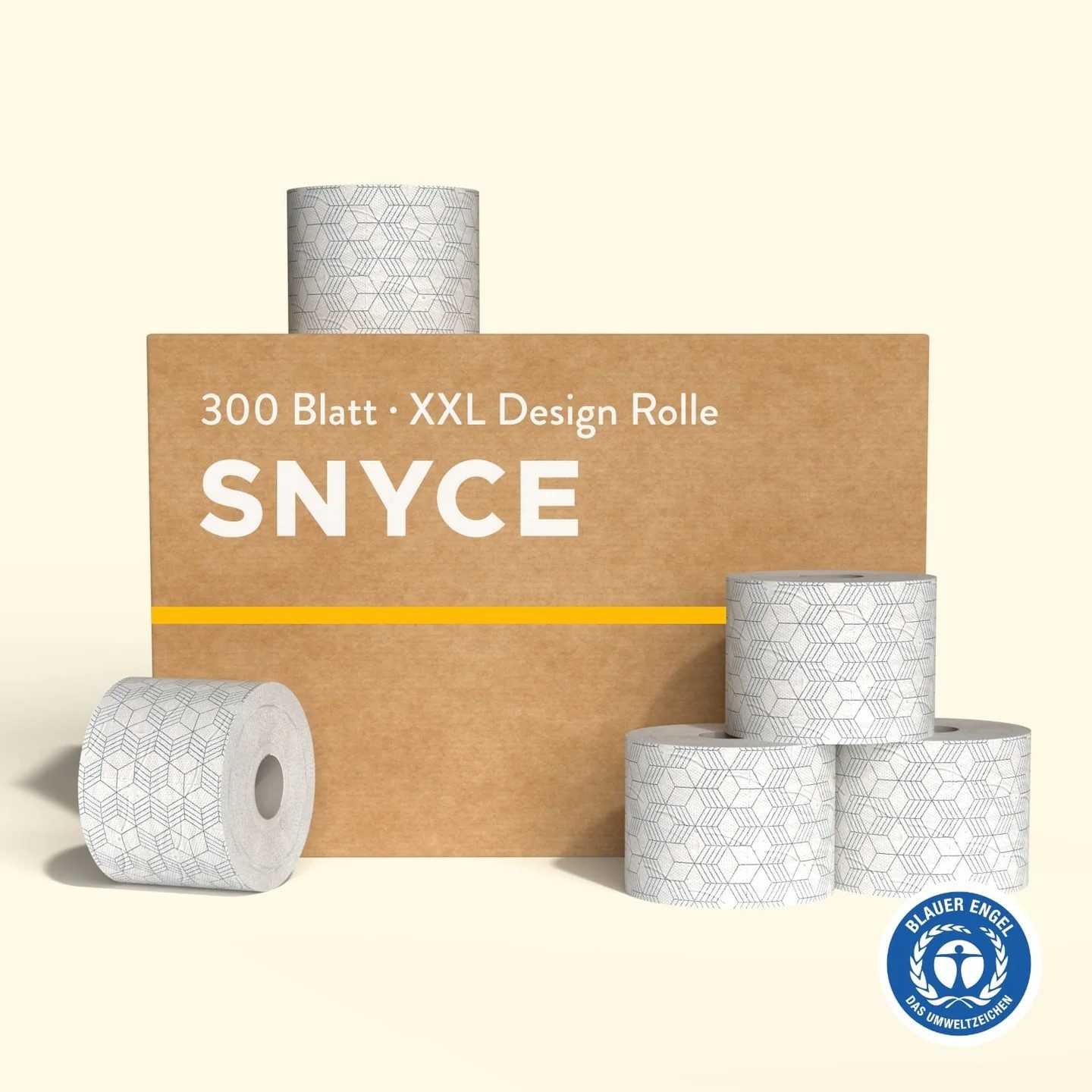 Das SNYCE Toilettenpapier mit stylisch-klassischem Nice Cube Design ist gleichzeitig weich, umweltfreundlich und optisch besonders durch den außergewöhnlichen Aufdruck. Jede Rolle hat 300 Blatt und passt auf alle üblichen Toilettenpapierhalter obwohl sie damit deutlich mehr Blatt pro Rolle hat als andere üblichen Standard-Klopapierrollen. Verwendet wird ausschließlich 100% Recyclingpapier. Durch die Prägung und die 3 Lagen ist das Papier besonders weich, angenehm auf der Haut und reißfest.