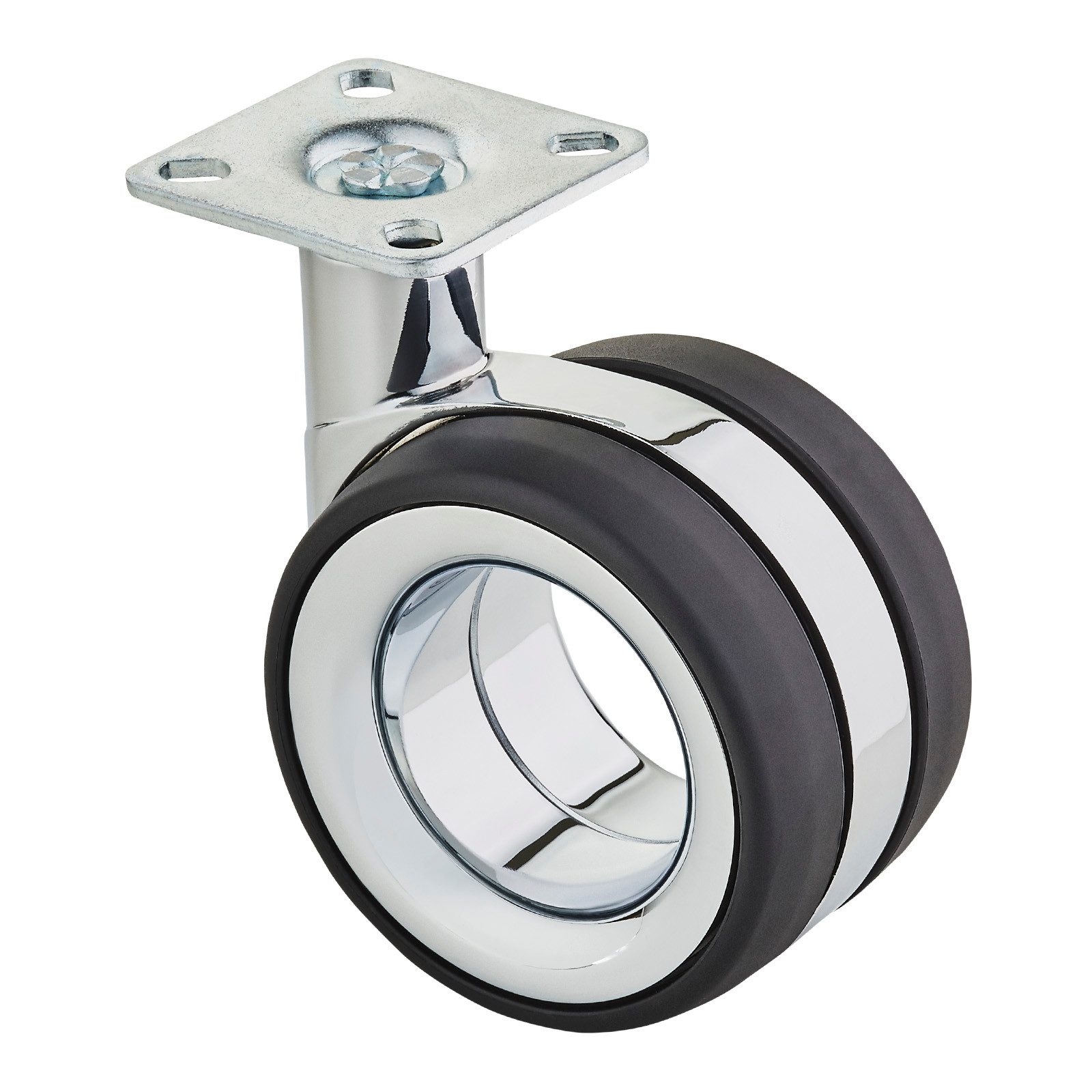 Lieferumfang | 1 Stück Möbelrolle Düsseldorf Chrom / schwarz ohne Befestigungsschrauben |