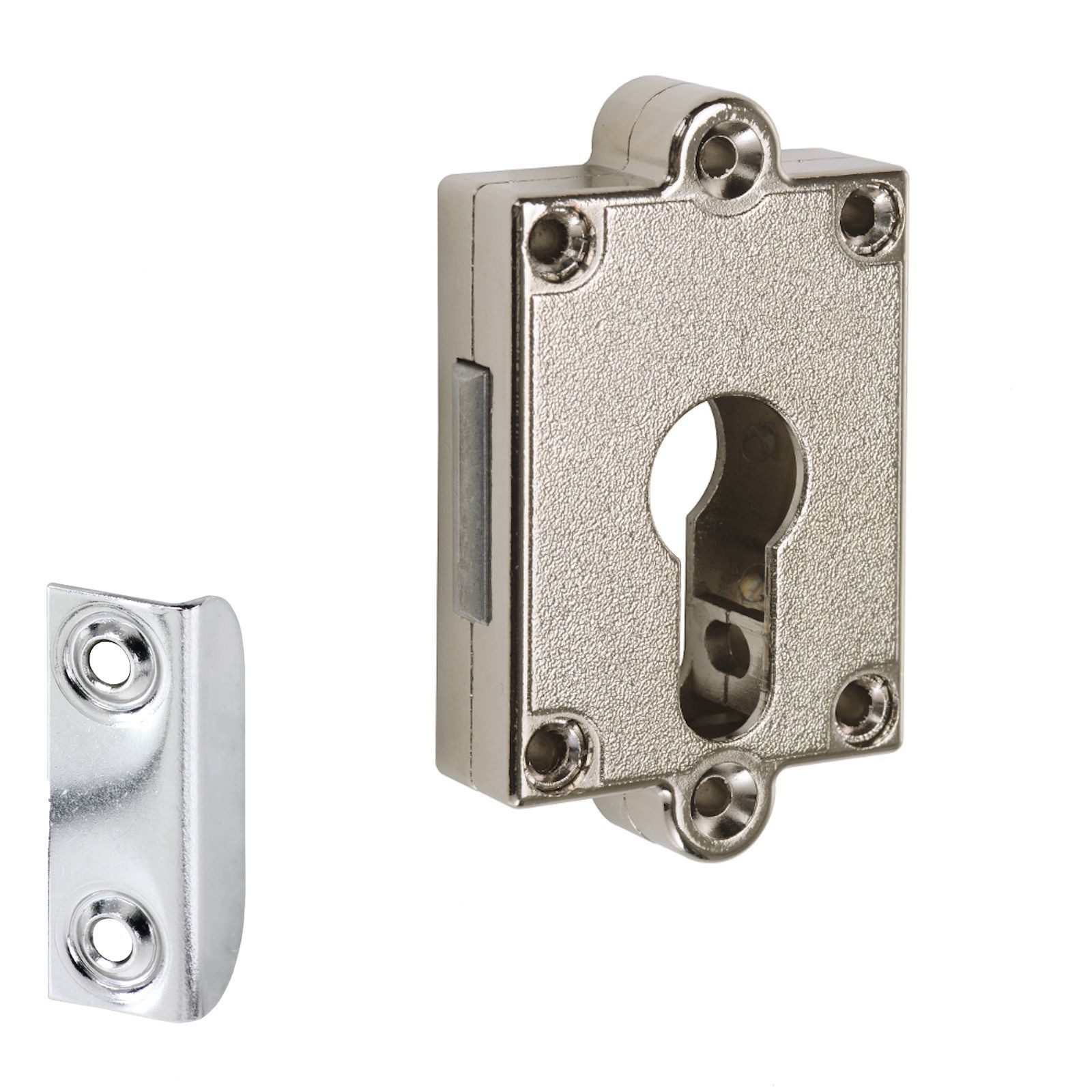 Lieferumfang | 1 Set Möbelschloss inkl. Schließwinkel ohne Befestigungsschrauben 1 Stulpschraube inkl. Montageanleitung |