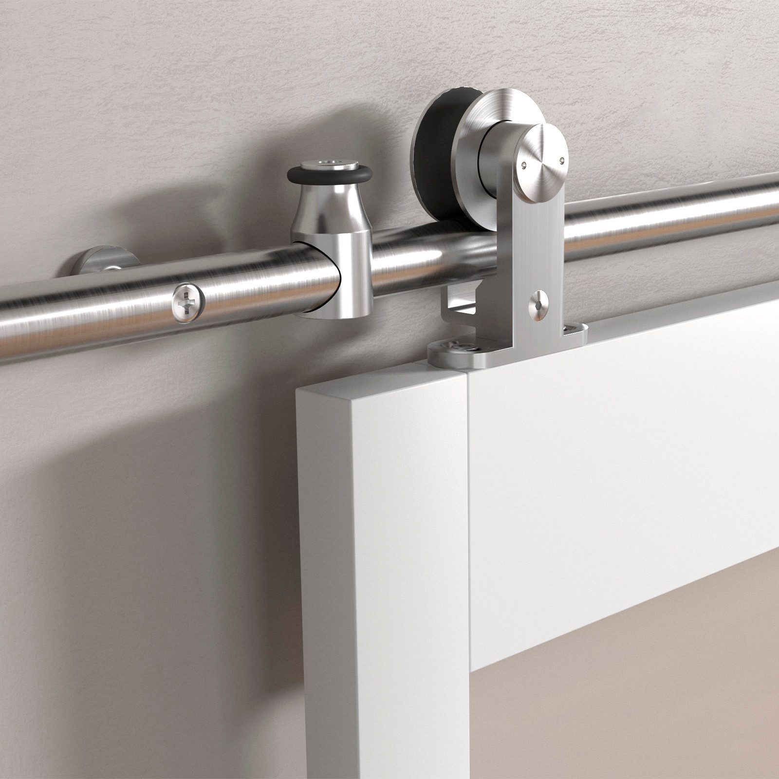 Technische Daten: Material: Edelstahl Einsatzbereich: Für Holztüren Mit Türstopper & Bodenführung Empfohlene max. Türbreite: 1000 mm Schienenlänge: 2005 mm (2-teilig) Maximale Belastung: Bis zu 80 kg Türgewicht Türstärke: Geeignet für Türen mit einer Stärke von 30-40 mm Montage: Wird von oben mit der Tür verschraubt