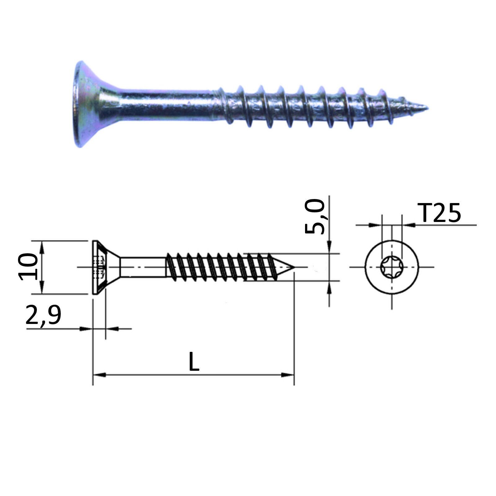 500 Stück Spanplattenschrauben mit Teilgewinde 5,0 x 30 mm I-Stern (Torx)