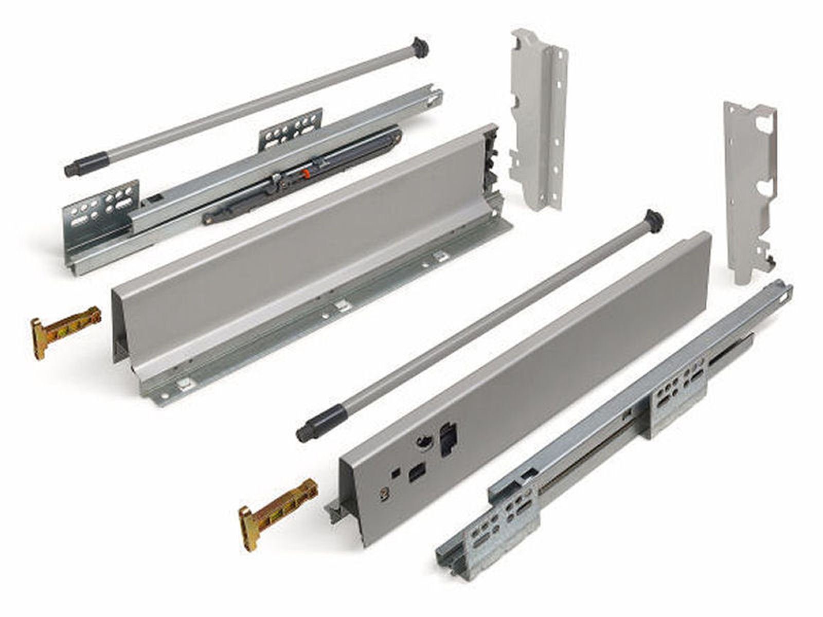 Lieferumfang: 1 Komplettset Modern Box Schubladensystem bestehend aus: 1 x Vollauszüge rechts / links 1 x Zargen rechts / links 1 x Längsreling rechts / links 1 x Frontbefestigung rechts / links 1 x Rückwandbefestigung rechts / links Der Holzboden, die Holzrückwand und Schubladenfront sind nicht im Lieferumfang enthalten.