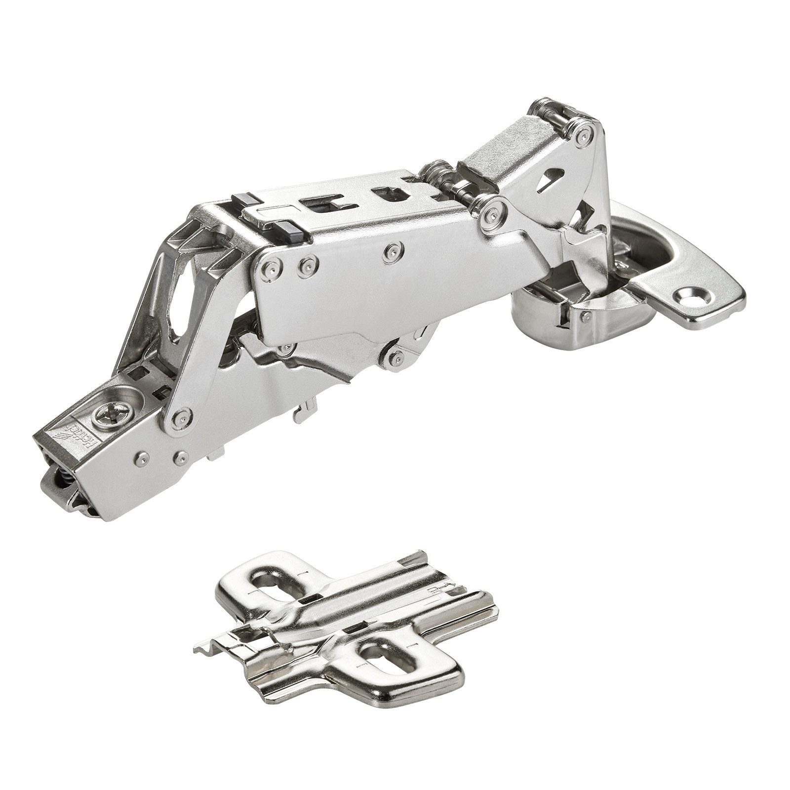 Inkl. Kreuz-Montageplatte Mit Langlochverstellung Distanz 0 mm Dies sorgt dafür, dass das Scharnier und die Tür in einer möglichst flachen Position zur Schrankwand montiert werden, was ideal für Anwendungen ist, bei denen ein bündiger oder nahezu bündiger Abschluss der Tür mit der Schrankwand gewünscht ist.