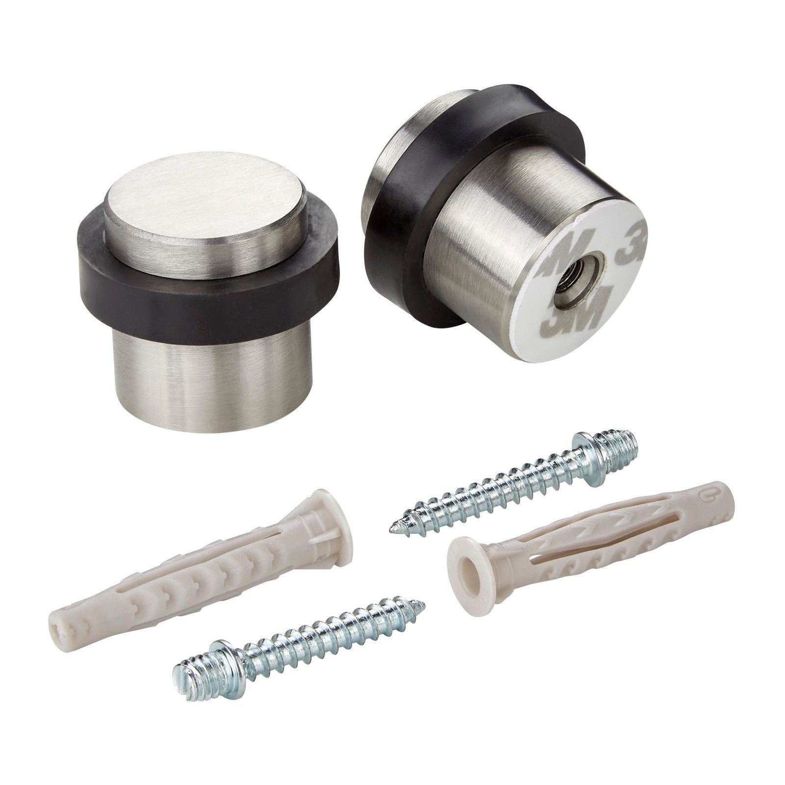 Lieferumfang: 2 x Türstopper inkl. Befestigungsset (Stockschraube: M6/5 x 30 mm, Dübel: 6 x 40 mm, 3M Klebepad)