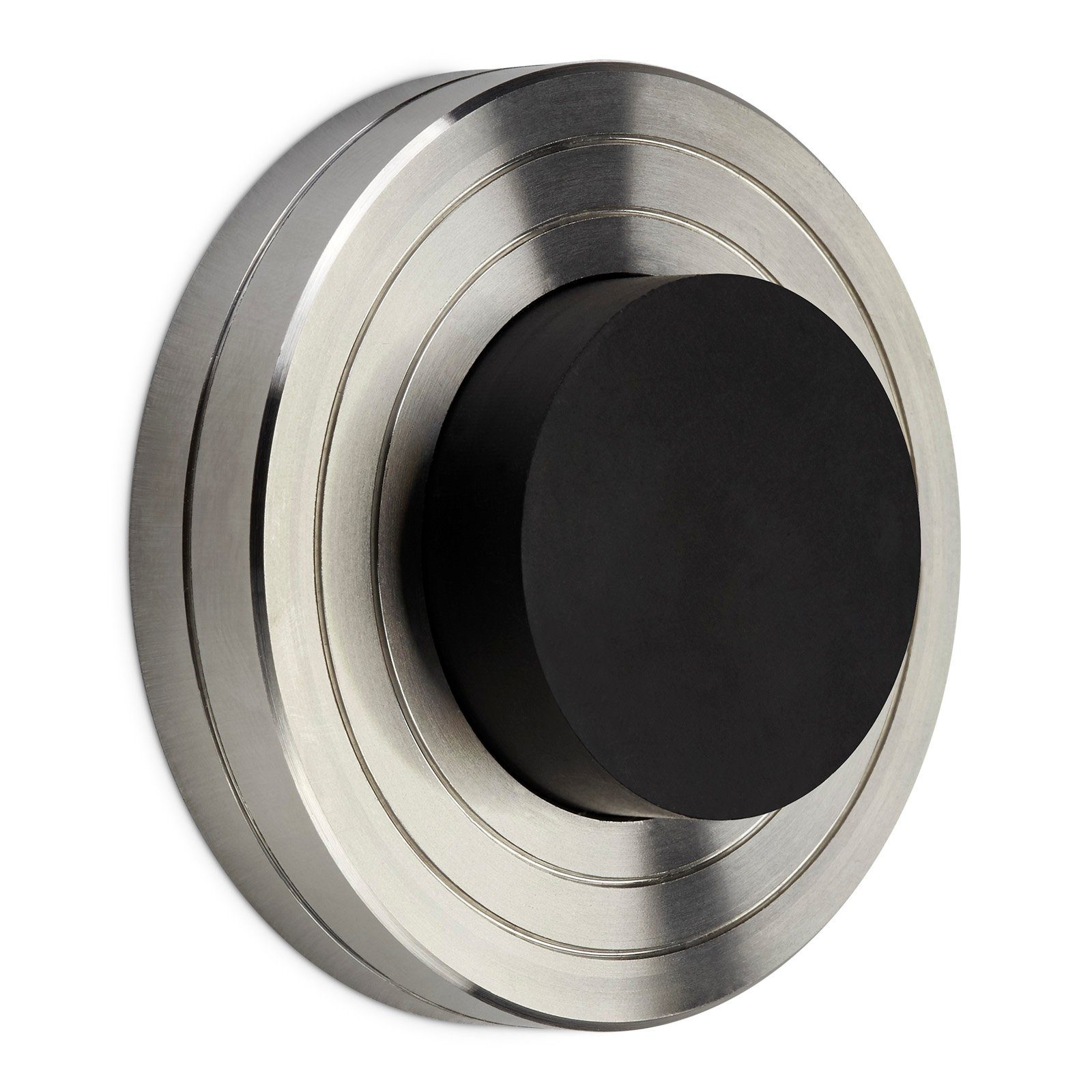 Dieser moderne Wandtürstopper sieht nicht nur gut aus, sondern schützt Ihre Türen und Wände vor Beschädigungen. Er wird mit einer Einlochbefestigung an der Wand montiert und schließt mit einem weichen, schwarzen Gummipuffer ab. Sehr hochwertige Verarbeitung mit gefaster 45° Kante Material: echt Edelstahl massiv Oberfläche: gebürstet Durchmesser: 60 mm Tiefe inkl. Gummipuffer: 20,5 mm Gummi-Ø: 33 mm Gummistärke: 8,5 mm Die Türstopper werden in Höhe des Türdrückers montiert.