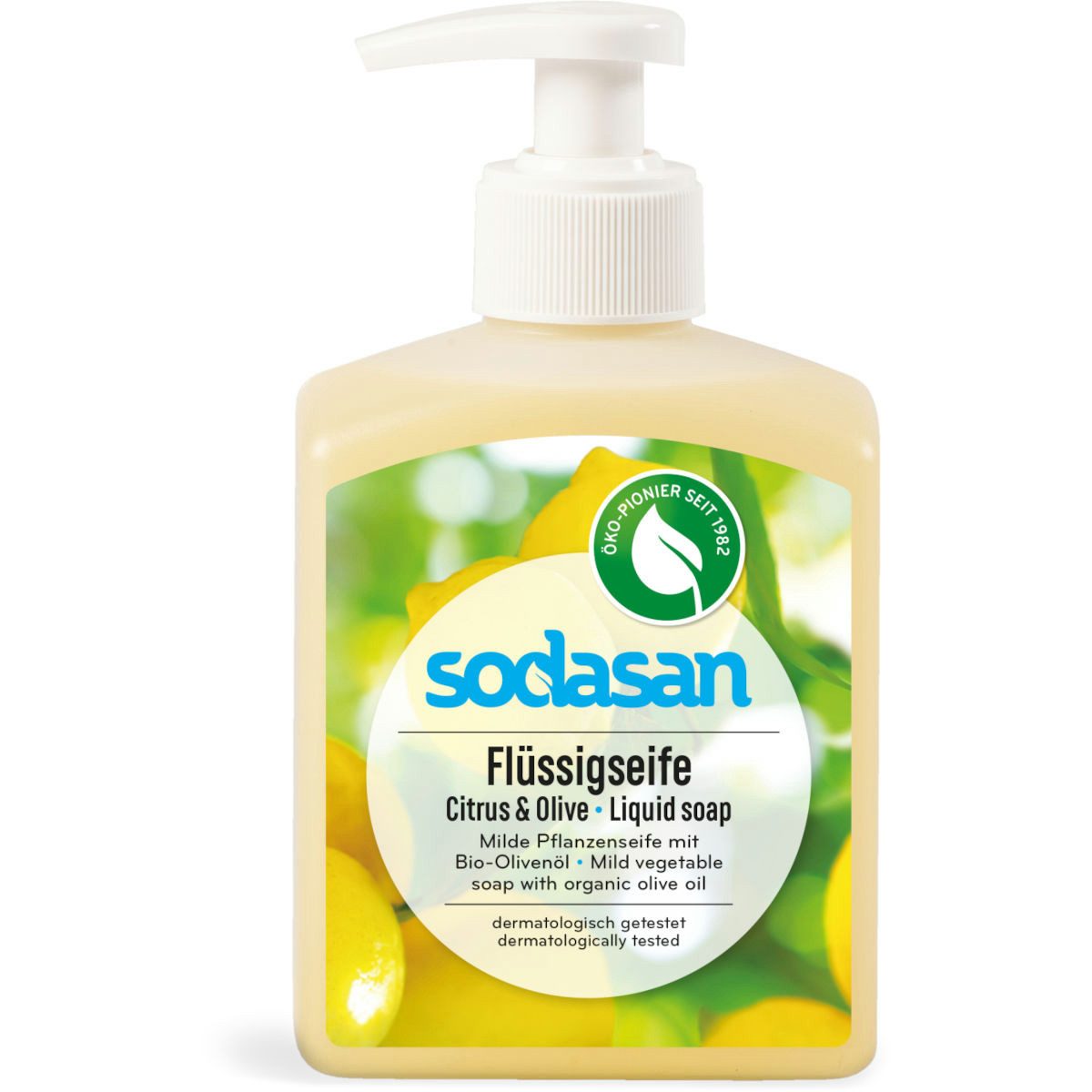 Der zarte Pflegeschaum der Sodasan Flüssigseife Citrus u. Olive verleiht den Händen ein gepflegtes, sauberes Hautgefühl. Fruchtige Zitrusnoten aus ätherischen Ölen sorgen für ein erfrischendes Pflegeerlebnis.