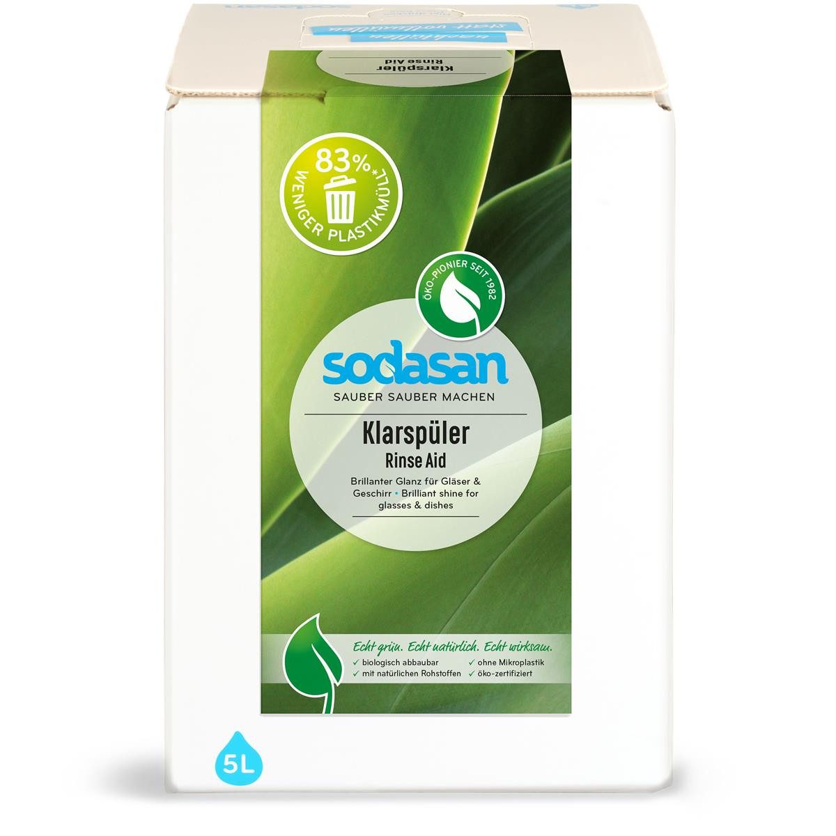 Im Lieferumfang enthalten: Sodasan Klarspüler BiB 5LInhaltsstoffe | >30% Wasser, 5 -15% Zitronensäure, Bio-Alkohol, <5% Citrate, nichtionisches Tensid (Zuckertensid) |