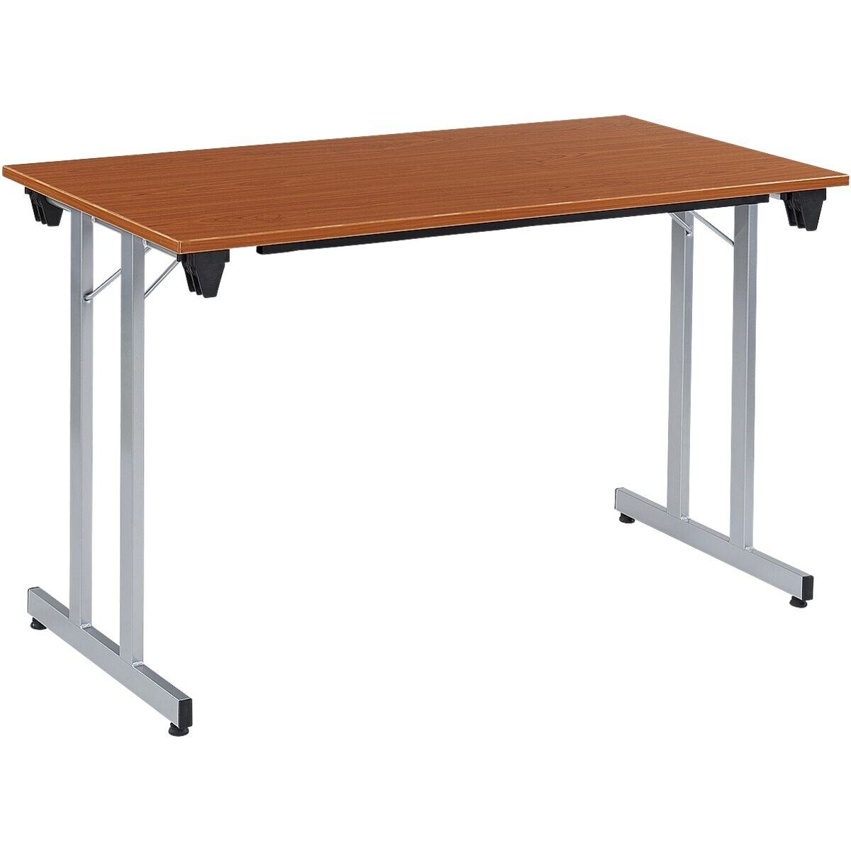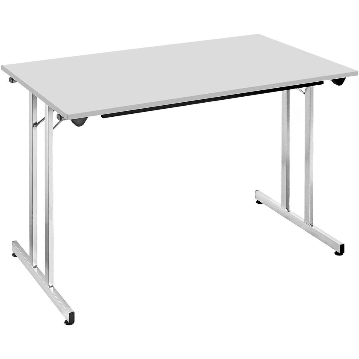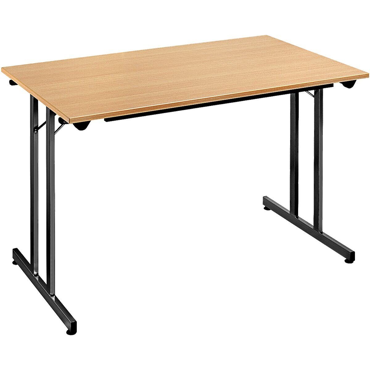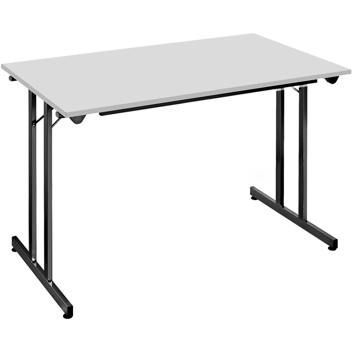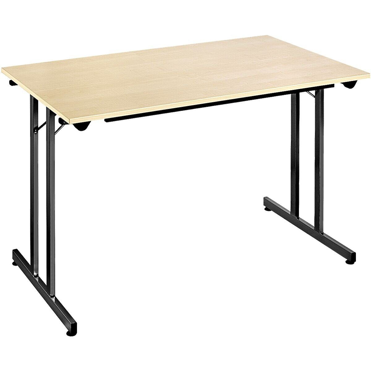 Klapptisch 120x60 cm Gestell schwarz, Ausführung: mit Rundrohr-Fußgestell, schwarz (Ø 3,0 cm), melaminharzbeschichtet, Plattenstärke: 19 mm, PVC-Kanten, Sicherheitsarretierung, gut stapelbar durch vorhandenen Distanzhalter, mit Höhenausgleichsschrauben