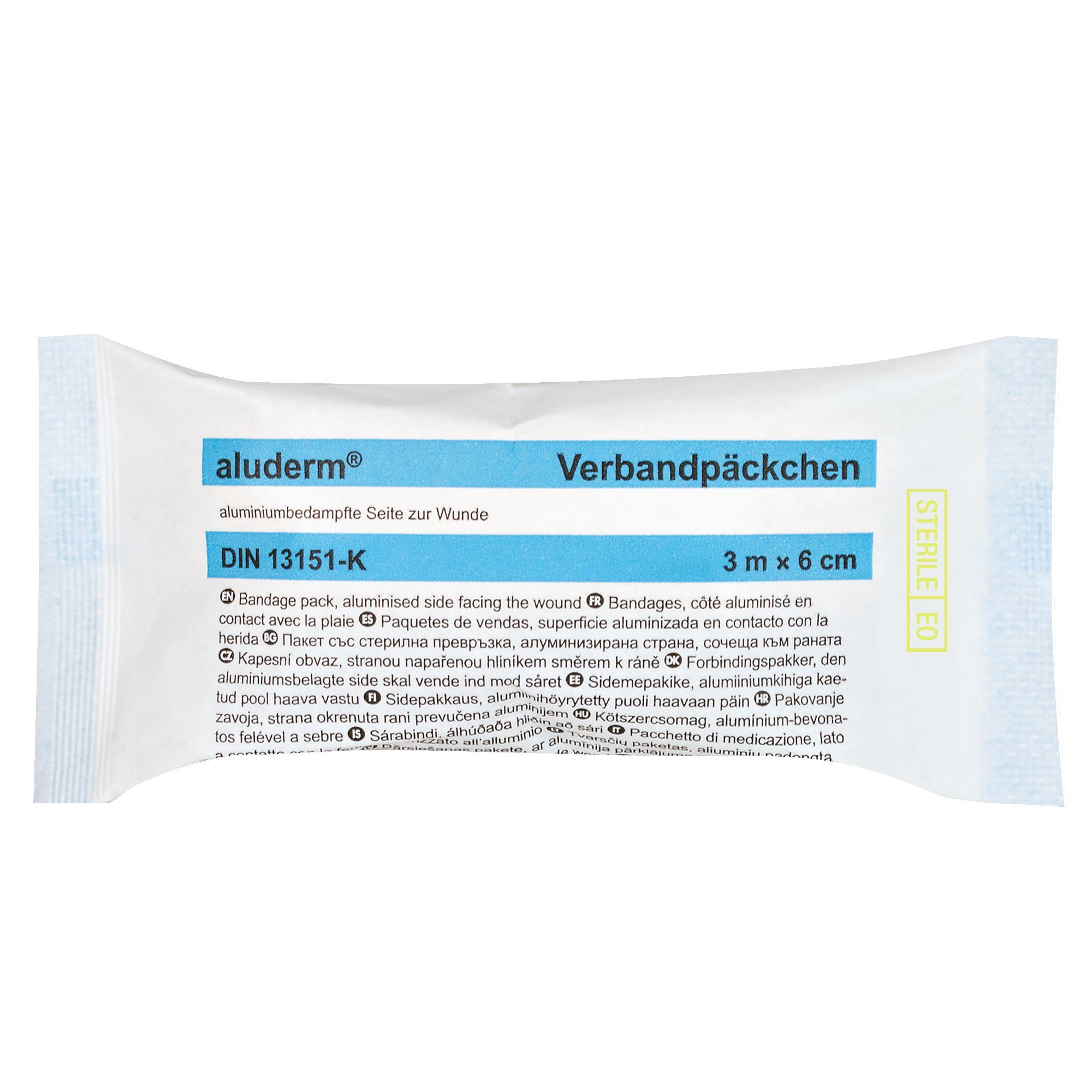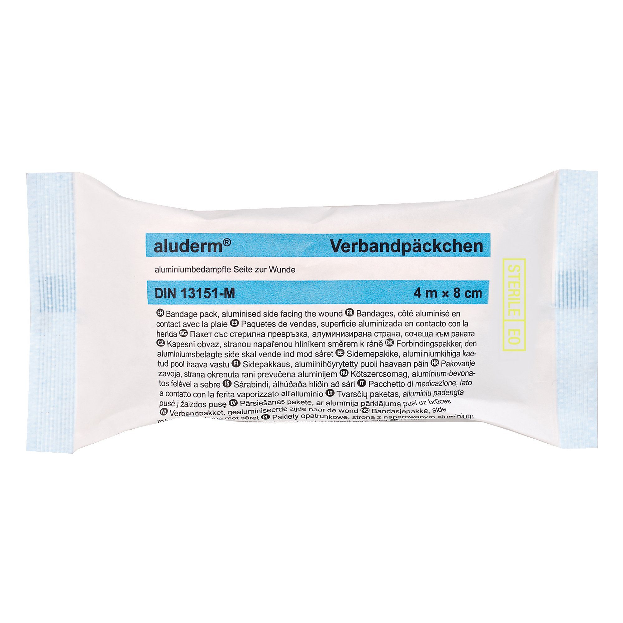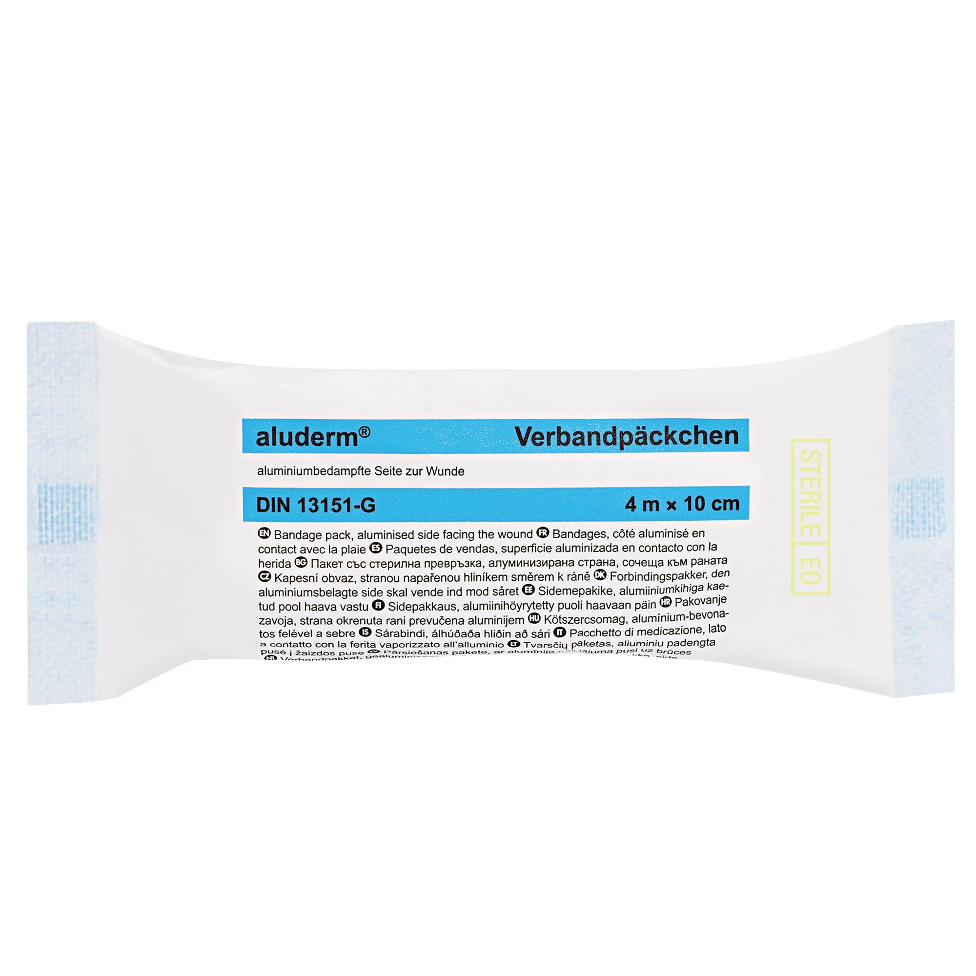 aluderm von SÖHNGEN sind Fixierbinden, welche über eine aluminiumbedampfte Wundauflage aus Polyestervlies und eine hydrophobierte PP-Abschlusslage verfügen. Die Wundauflage ist auf die elastische WS-Fixierbinde aufgesiegelt. Die Wundauflage eignet sich hervorragend für alle oberflächlichen Wunden und Verletzungen. Sie begünstigt die Hautbildung und den Heilungsverlauf durch sichergestellte Wundruhe bei Verbandwechseln. Der Verbandstoff ist besonders weich, die aluminiumbedampfte Wundauflage hat eine Saugfähigkeit 1.400 g/m2. Außerdem verklebt aluderm nicht mit der Wunde, ist nicht fasernd, atmungsaktiv, hypoallergen und frei von chemischen Bindemitteln. Die sterilen Verbandpäckchen von SÖHNGEN sind mit einem Haltbarkeitsdatum von 20 Jahren versehen (ab Herstellung 20 Jahre haltbar).