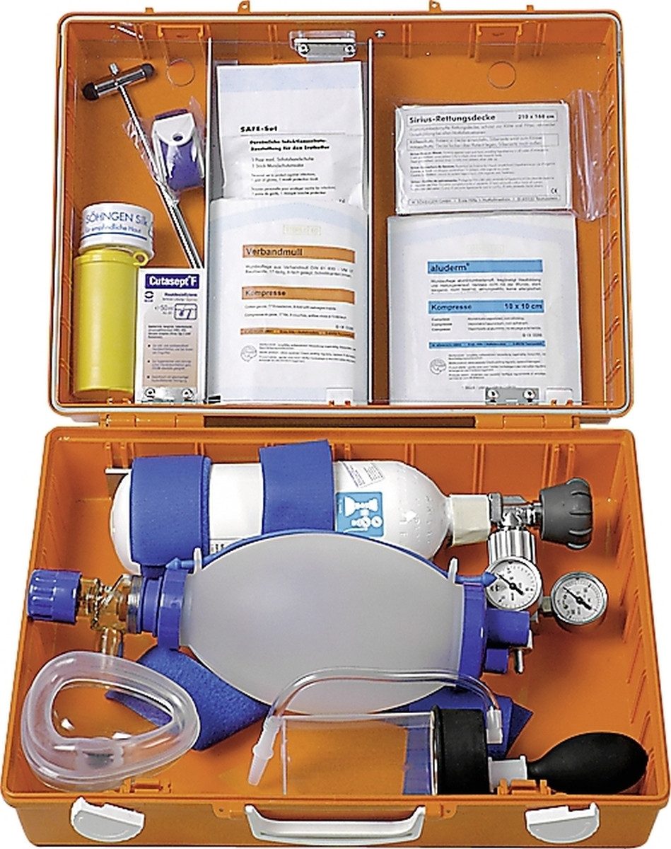 • Aus den Funktionsbereichen Beatmung, Sauerstoff, Absaugung, Injektion, Infusion, Diagnostik und Wundversorgung ist alles Notwendige für einen akuten Notfall enthalten