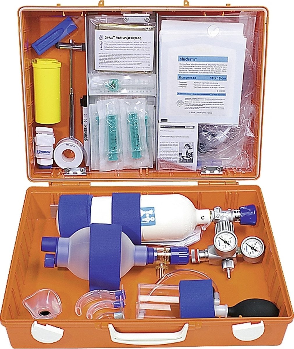 • Aus den Funktionsbereichen Beatmung, Sauerstoff, Absaugung, Injektion, Infusion, Diagnostik und Wundversorgung ist alles Notwendige für einen akuten Notfall enthalten