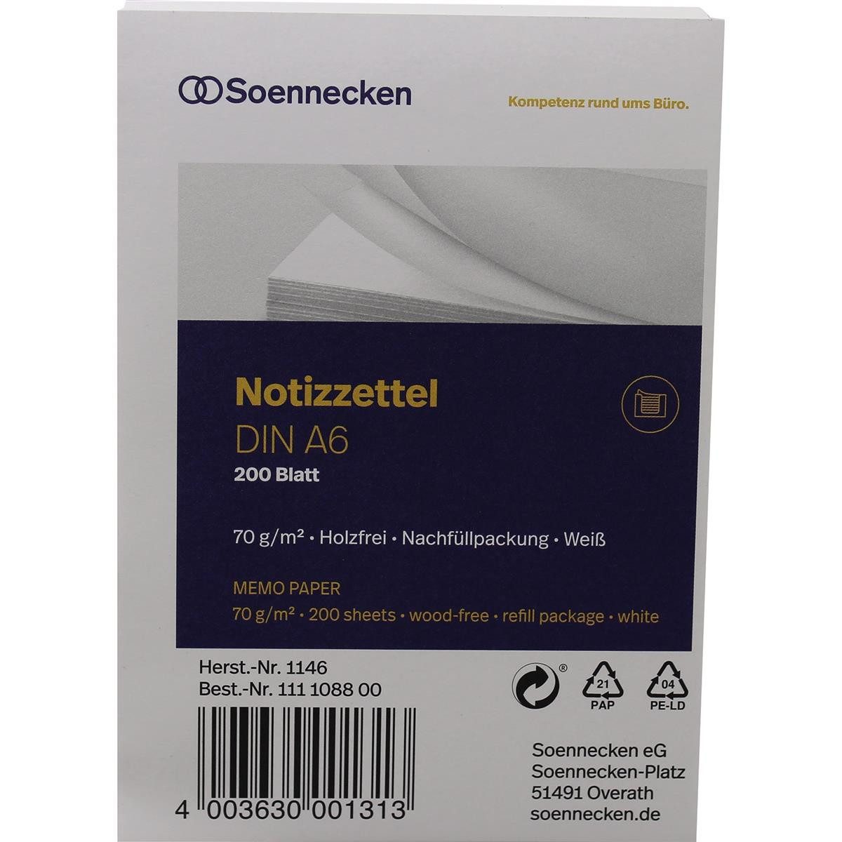 Notizheft Soennecken Zettelboxeinlage 1146 DIN A6 blanko 200 Bl./Pack.