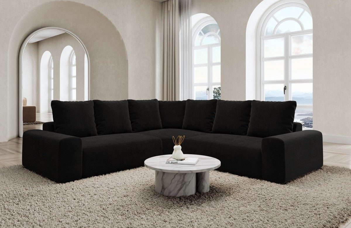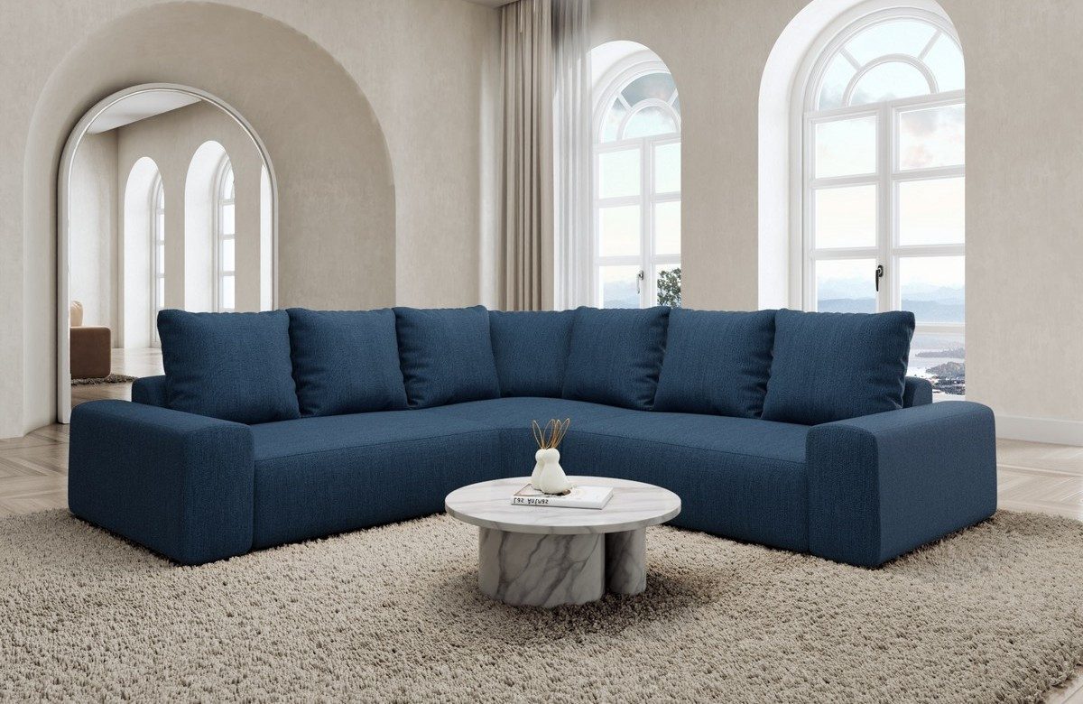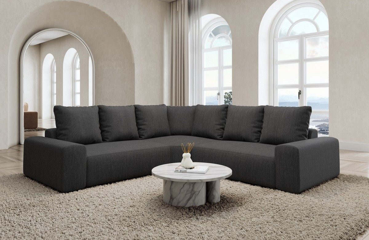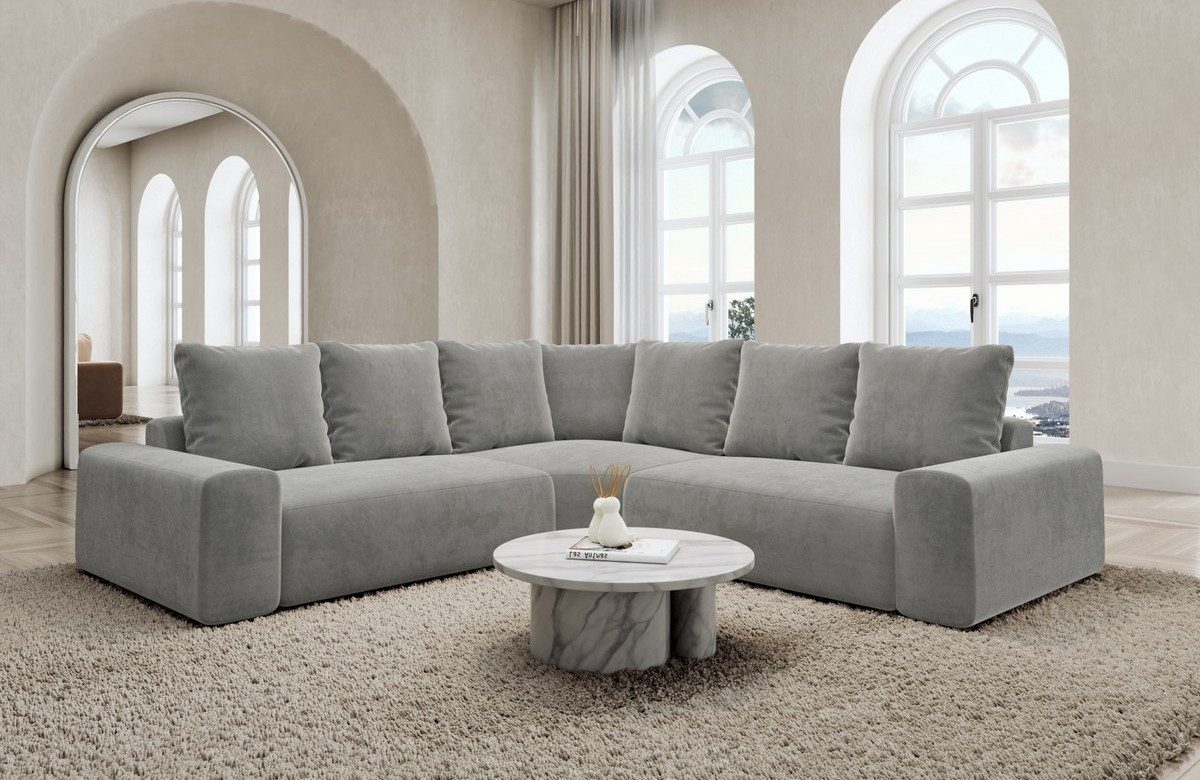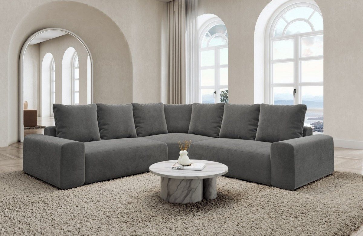 Das Ecksofa Gomera in L-Form kombiniert modernes Design mit außergewöhnlichem Komfort. Die großzügige Sitzfläche und die hochwertige Polsterung laden zum Entspannen ein und bieten den perfekten Rückzugsort für gemütliche Stunden. Dank der edlen Stoffauswahl lässt sich das Sofa ideal in verschiedene Wohnstile integrieren.