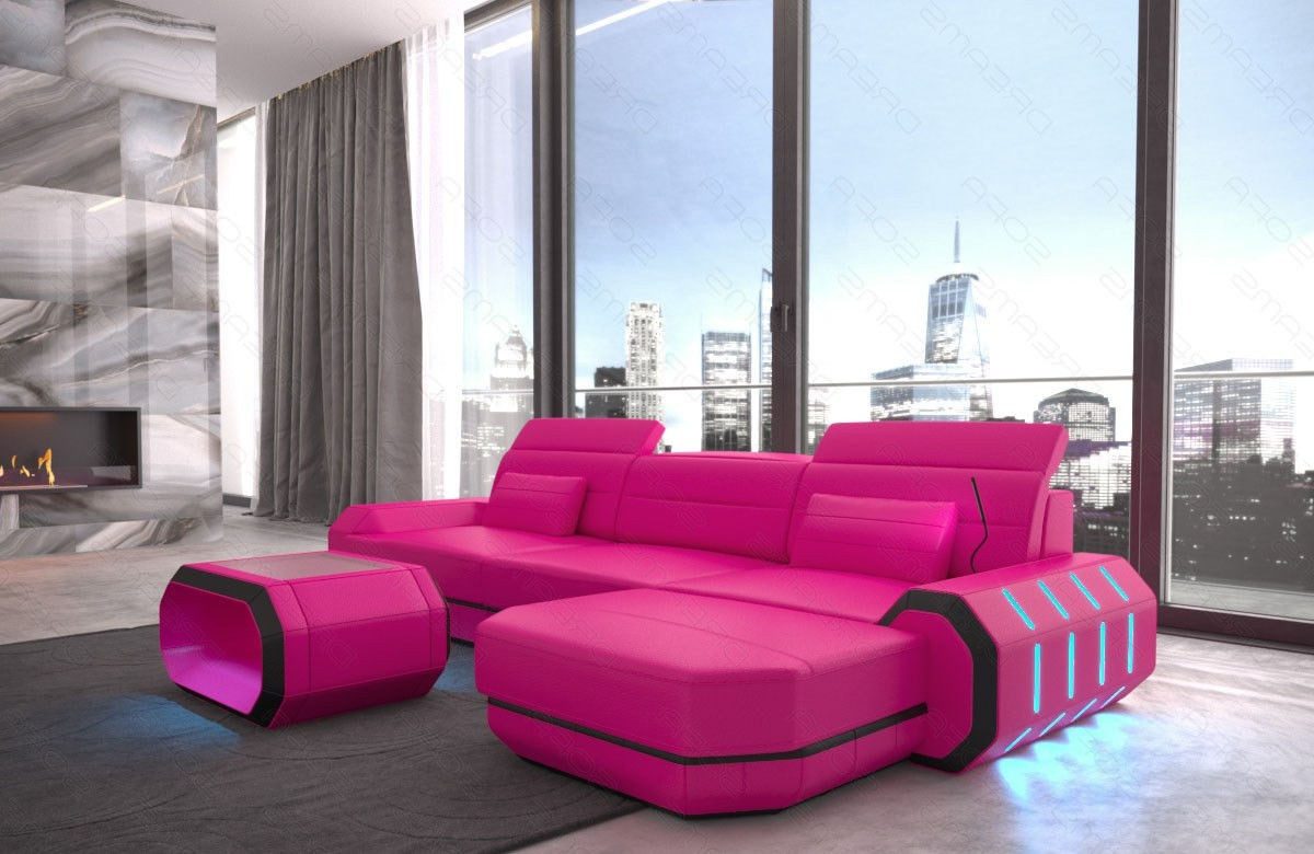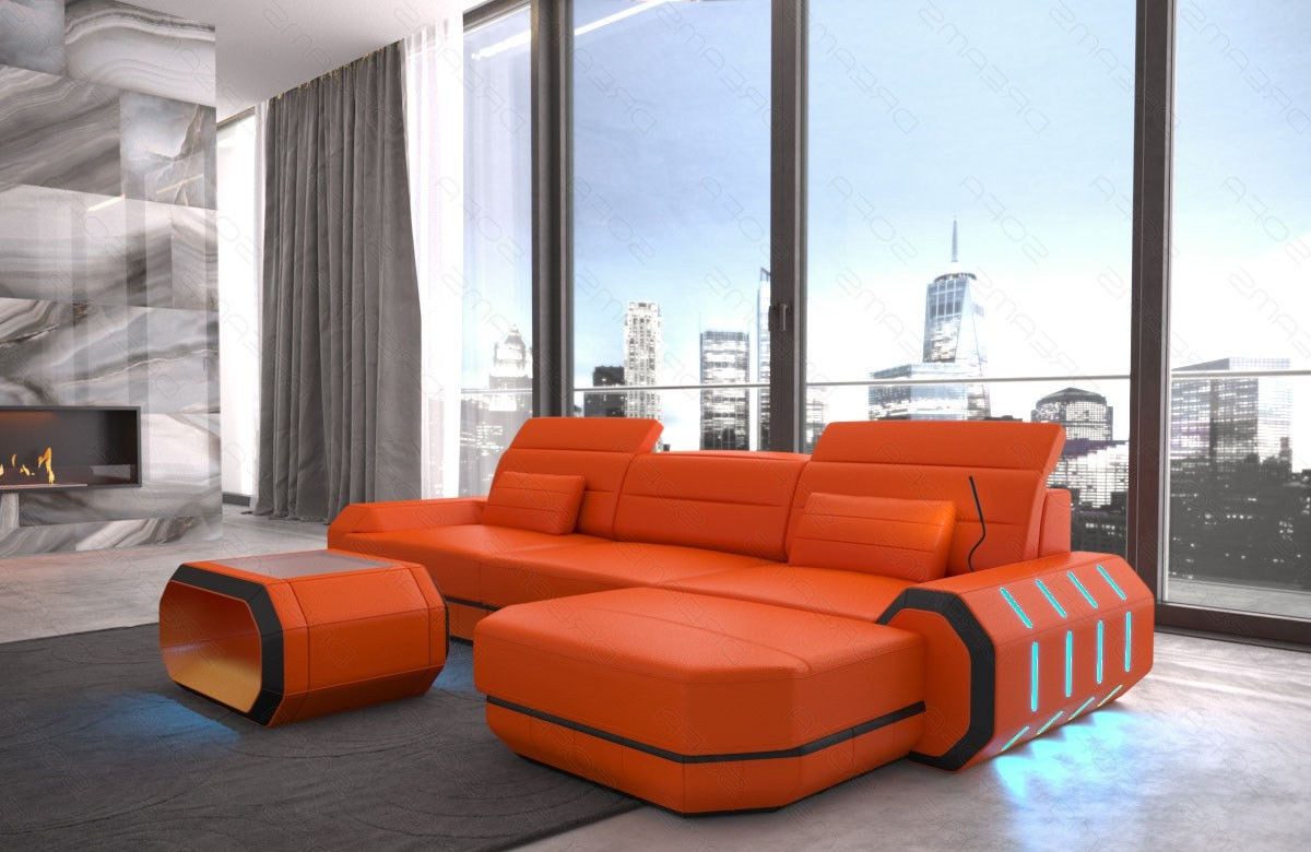 Ein weiteres Highlight ist die integrierte LED-Beleuchtung, die nicht nur für ein stimmungsvolles Ambiente sorgt, sondern auch mit Farbwechsel und einer praktischen Fernbedienung ausgestattet ist. Zusätzlich verfügt das Sofa über einen USB-Anschluss, der Ihnen ermöglicht, Ihre Geräte bequem aufzuladen.