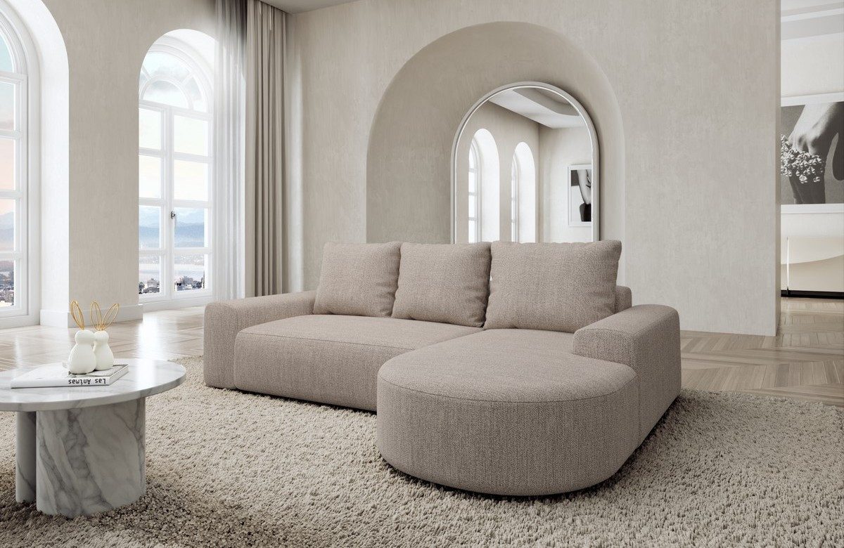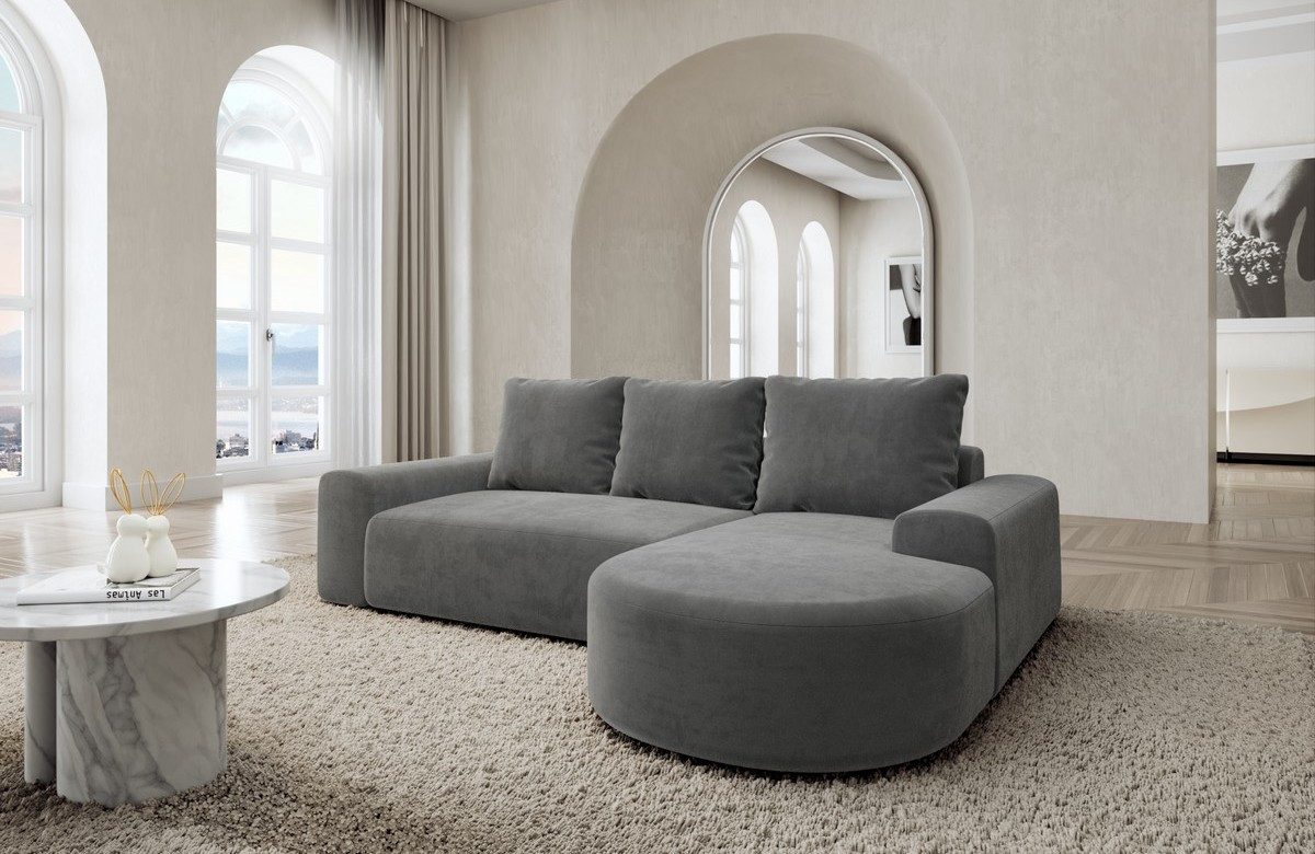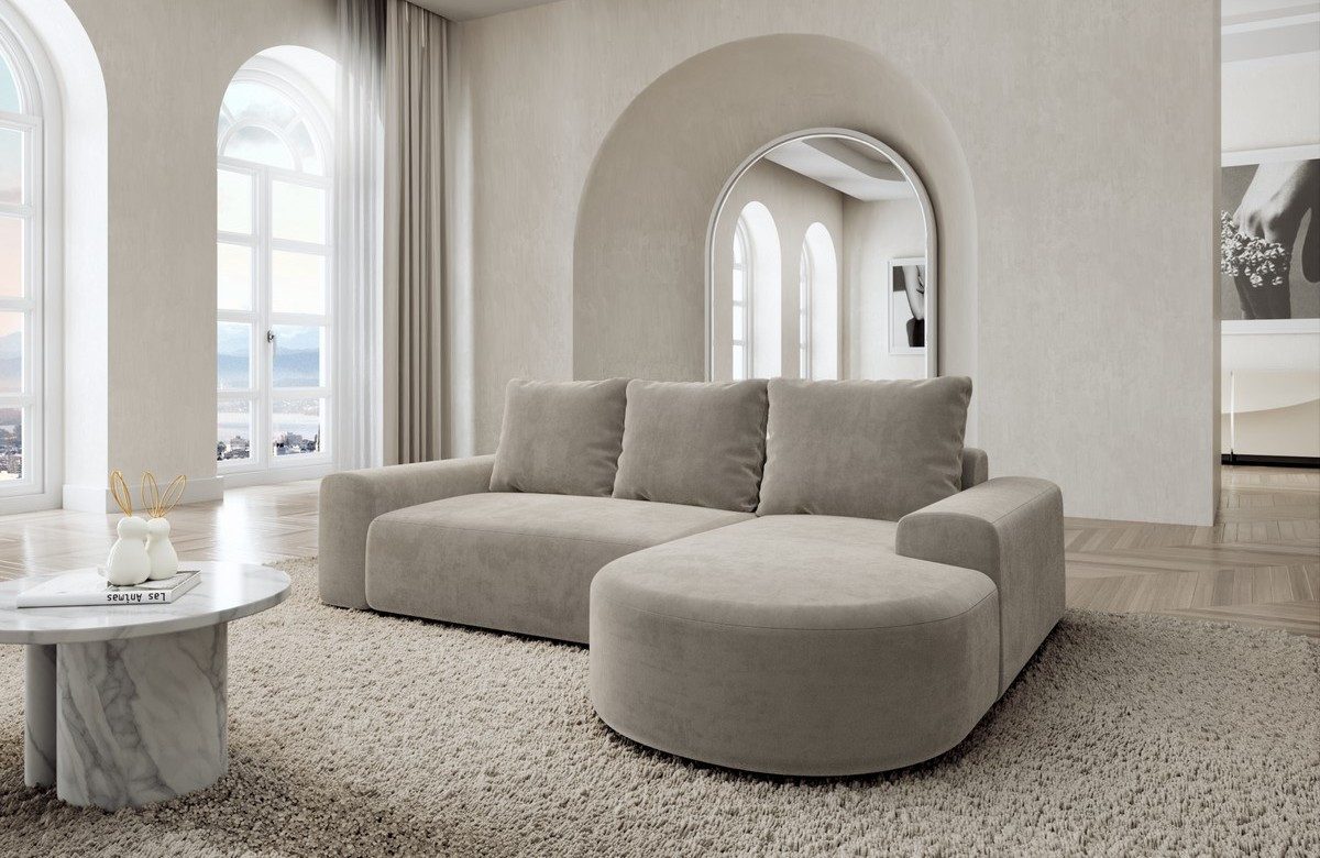 Das Ecksofa Gomera vereint stilvolles Design mit herausragendem Komfort. Dank seiner kompakten L-kurz Form passt es ideal in jedes Wohnzimmer und bietet eine großzügige Sitzfläche mit gemütlicher Ottomane. Perfekt für entspannte Stunden mit Familie und Freunden.