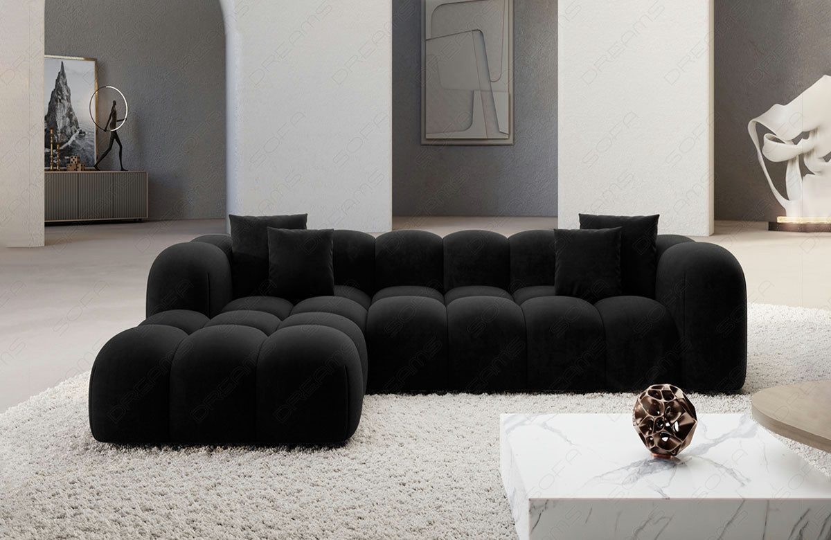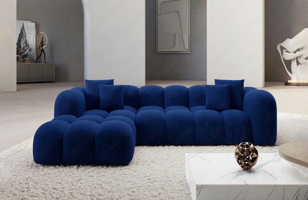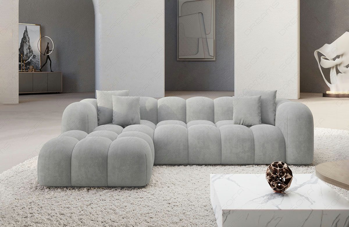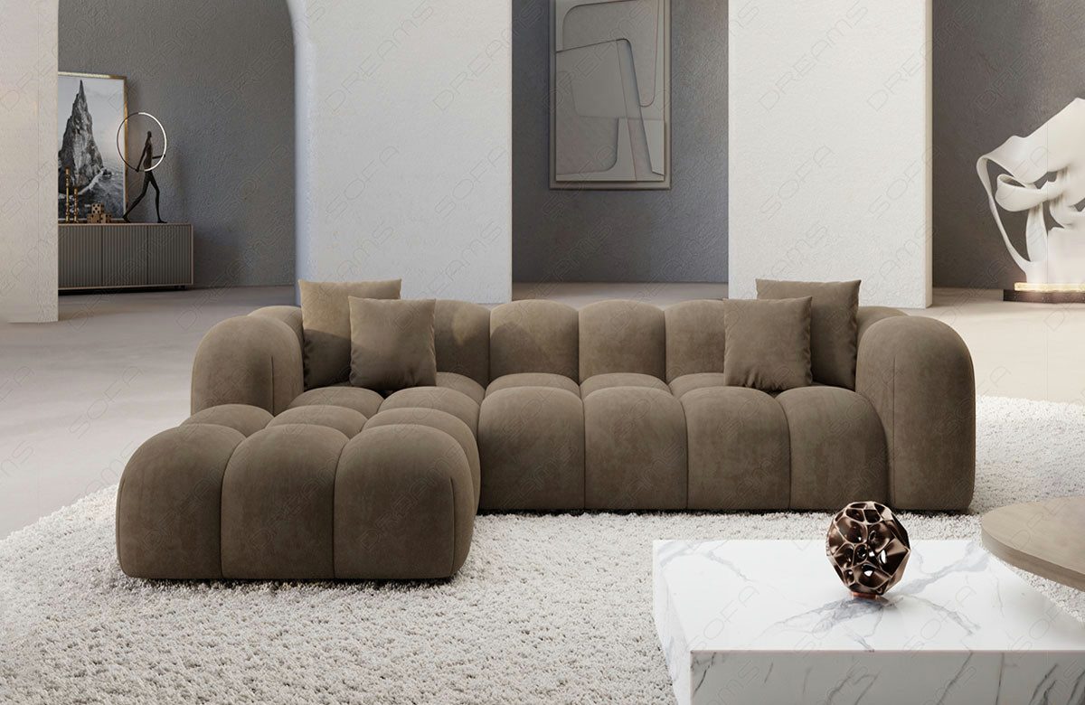 Die Vielseitigkeit des Formentera wird durch die Auswahl aus drei verschiedenen hochwertigen Bezugsstoffen unterstrichen, darunter eine Palette von modernen Farben, die Ihrem Wohnraum eine frische und zeitgemäße Atmosphäre verleihen. Ob Sie sich für einen eleganten Webstoff oder den einen luxuriösen pflegeleichten Samtstoff entscheiden – jedes Detail wurde sorgfältig ausgewählt, um höchsten Komfort und Langlebigkeit zu gewährleisten. Dank seiner geringen Abmessungen ist das Formentera L Form kurz Ecksofa äußerst platzsparend und vielseitig einsetzbar. Egal, ob Sie in einer geräumigen Loft-Wohnung oder einem gemütlichen Stadthaus leben, dieses Sofa fügt sich harmonisch in jede Umgebung ein.