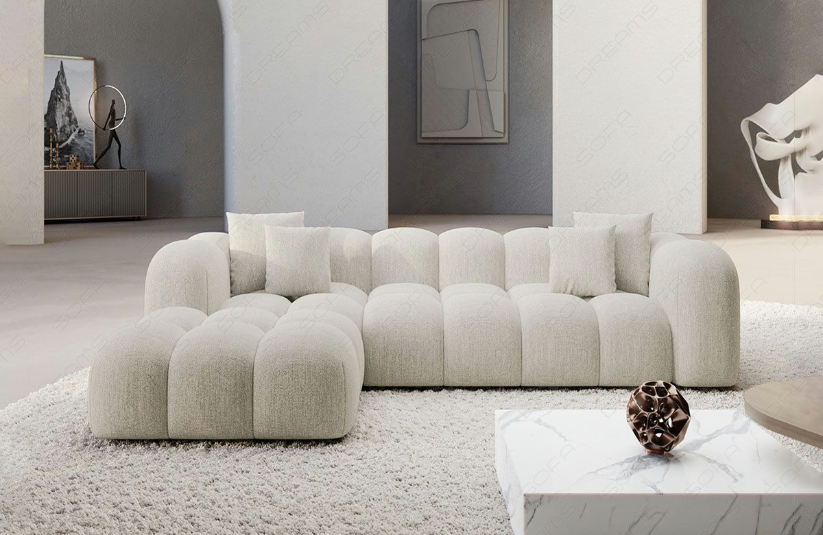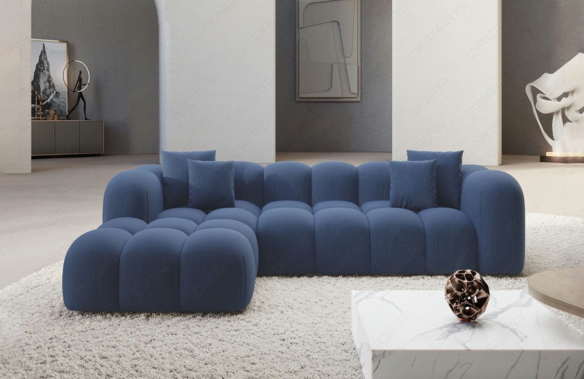 Entdecken Sie das Stoff Ecksofa Formentera L Form kurz – die ideale Kombination aus Stil und Funktionalität für Ihr Zuhause. Mit einer frei ausrichtbaren Ottomane bietet dieses Ecksofa maximale Flexibilität, um sich perfekt an Ihre Wohnraumgestaltung anzupassen.