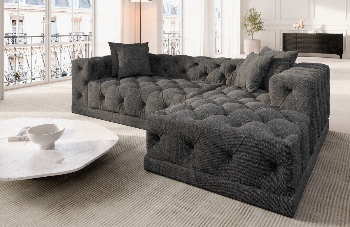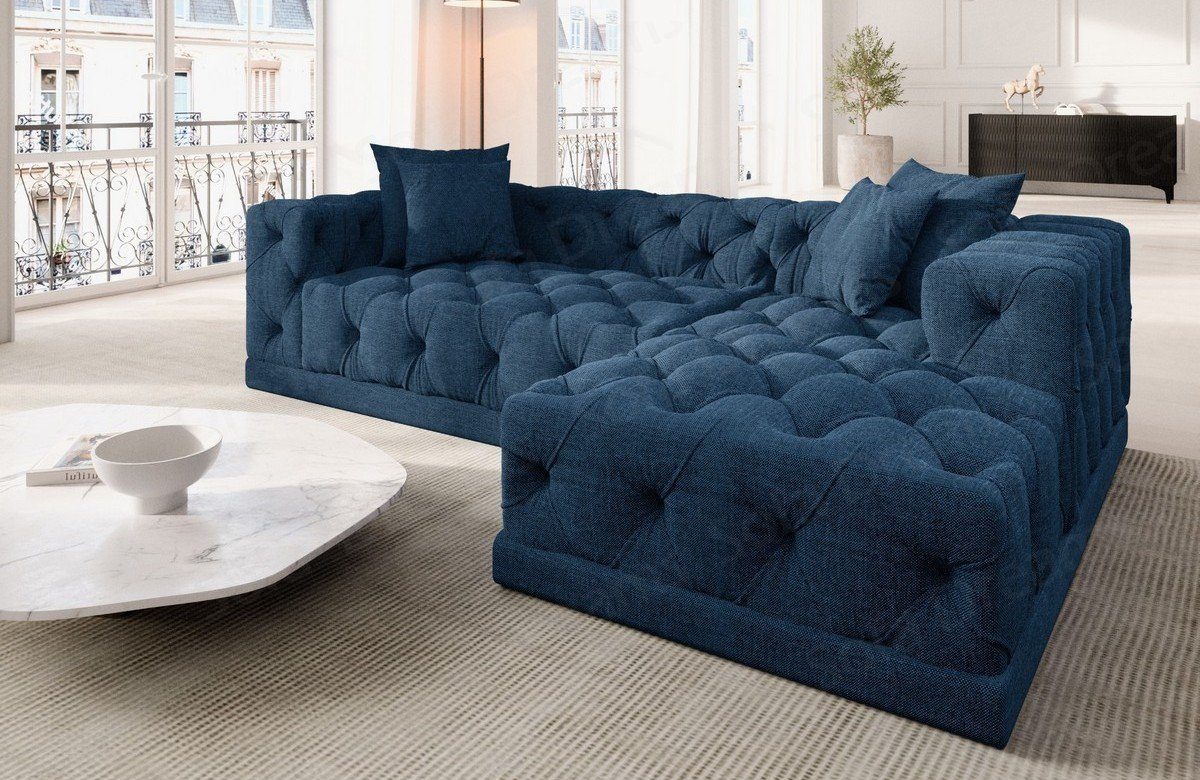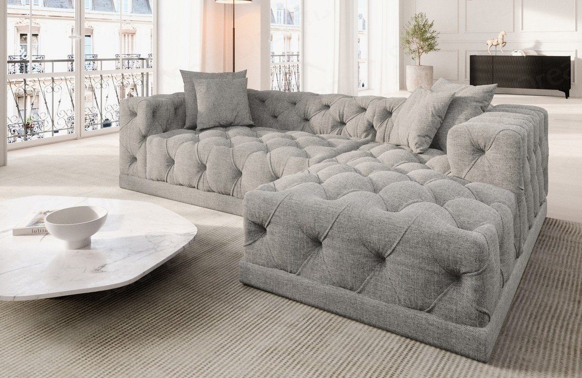 Mit dem Strukturstoff Sofa Palma L Form kurz bieten wir Ihnen ein weiteres schickes Designersofa im Chesterfield Stil mit Ottomane an. Die geringen Abmaße ermöglichen es Ihnen, das Sofa vielseitig einsetzen zu können. Sie können sich Ihr Designersofa individuell nach Ihren Wünschen zusammenstellen. Die hochwertige Federung steigert nicht nur den Sitzkomfort, sondern beugt auch Verformungen vor, welche durch das Sitzen entstehen. Lernen Sie die Vorteile kennen, welche Sie durch Temperatur-unempfindliche Stoffe haben. Genießen Sie die Vorteile Temperatur unempfindlicher Stoffbezüge bei dieser Couch. Eine Stoffcouch hat den Vorteil, dass sie wenig empfindlich auf Temperaturschwankungen reagiert. Sie heizt sich im Sommer nicht unangenehm auf und kühlt im Winter nicht so stark ab. Für die Eckcouch steht Ihnen hier der topaktuelle Strukturstoff zur Verfügung. Dieser überzeugt allein durch seine hohe Verschleißfestigkeit.