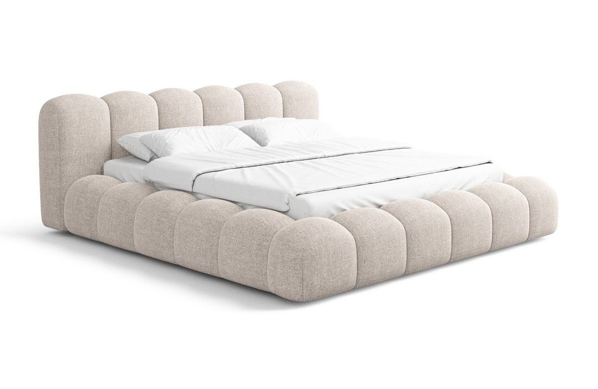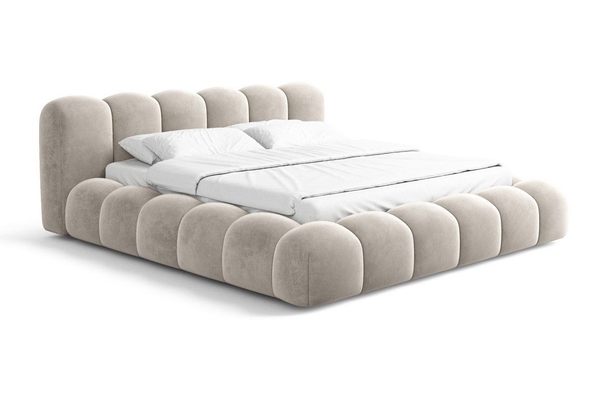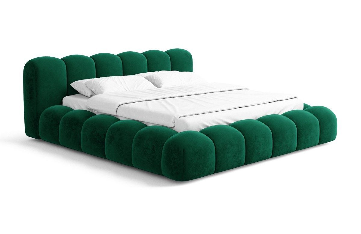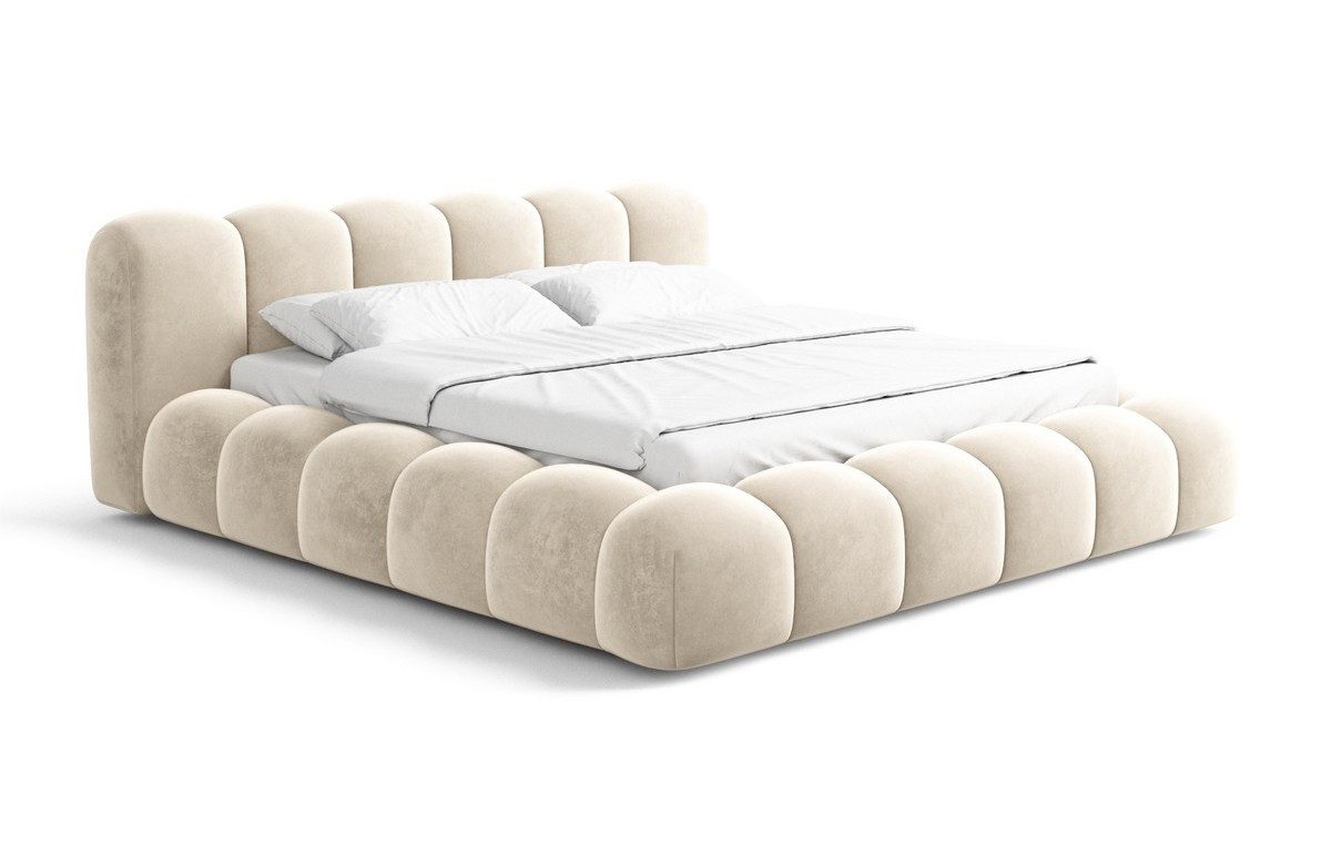 Das Bettgestell des Coruna Komplettbettes ist mit größter Sorgfalt aus hochwertigen Materialien gefertigt. Sie haben die Möglichkeit, aus verschiedenen Bezugsstoffen zu wählen, darunter luxuriöser Samtstoff, weicher Bouclèstoff und strapazierfähiger Strukturstoff bzw. Webstoff. Diese breite Palette an Materialien ermöglicht es Ihnen, das Bett an Ihre persönlichen Vorlieben und die Einrichtung Ihres Schlafzimmers anzupassen.